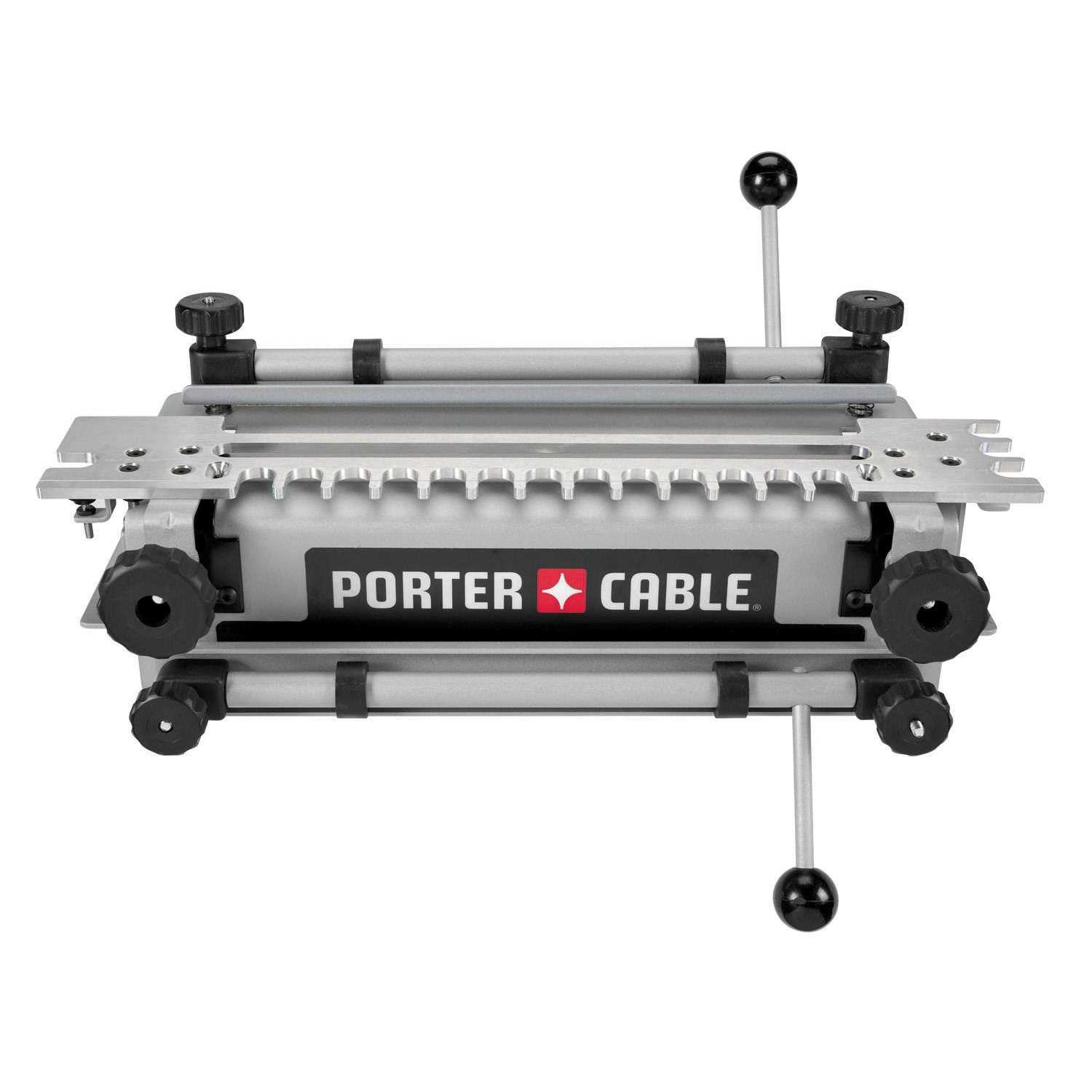 Cut precise and accurate dovetail joints easily with a 12-inch Dovetail Jig from Porter-Cable. The template allows for quick set up to cut 1/4-inch to 1/8-inch stock and the carbide-tipped bit gives you accurate and smooth joints. The included machined aluminum Porter-Cable dovetail jig template lets you create half-blind, sliding, box joints and rabbeted half-blind dovetail joints. A router bit gauge gives you instant accuracy without taking additional measurements. The Porter-Cable 12-inch dovetail jig has a single-piece steel design for fast clamping and bolting directly to your workbench and requires no assembly. Sandpaper-backed cam clamps give you solid traction on every piece of wood. Printed and mounted instructions give you immediate guidance for all the Porter-Cable dovetail router jig’s various applications.
