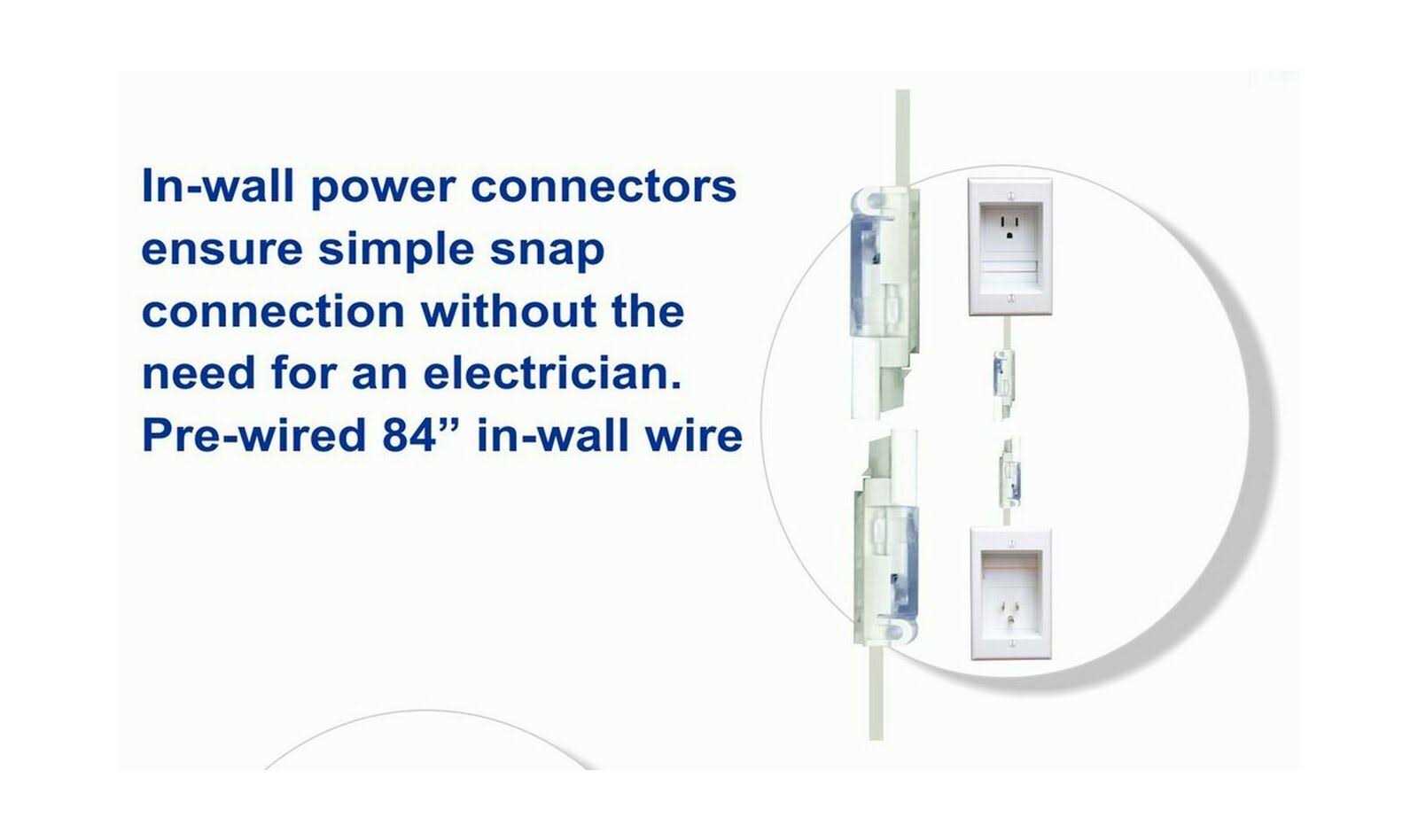 - No more messy cables hanging down the wall between the TV and the floor. No electrician needed with snap together Power Connectors.