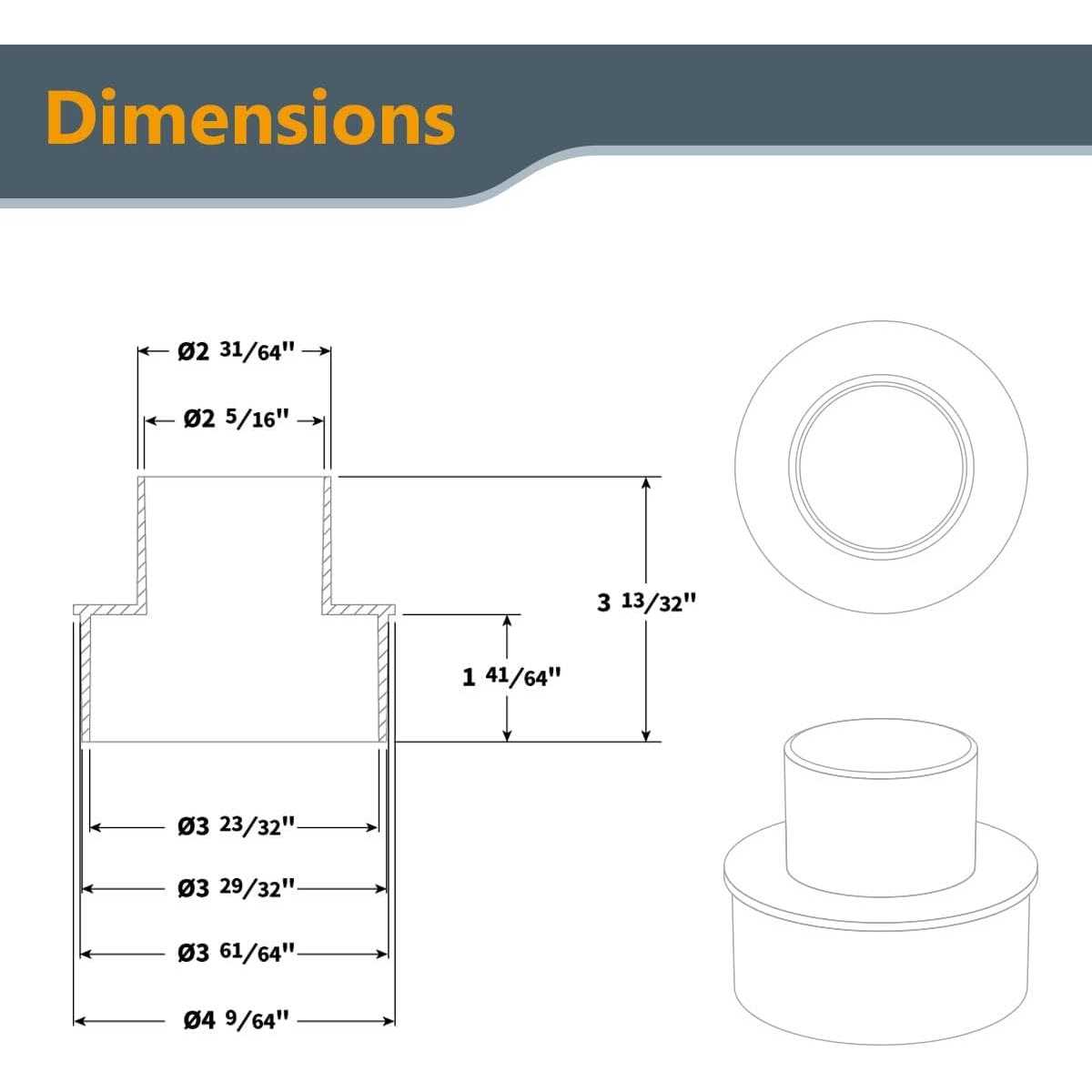 - 4-Inch nominal end measures 3-15/16-Inch O.D. and 3-45/64-Inch I.D.