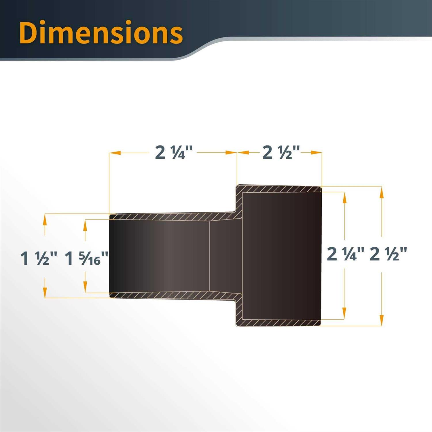 Specifically, it connects a 1-1/2″ ID with a 2-1/2″ ID dry wet vacuum accessories – providing you with flexibility and consistent grabbing power. 【Premium Quality】 Made with ABS plastic, this conversion unit eliminates the threat of corrosion and offers optimal impact resistance and durability for long-term use. 【Please Note】 This fitting has a 2-1/2″ OD end and is designed to fit 2-1/2″ ID ports or openings, like flexible dust collection hoses. If you need to connect to a 2-1/2″ OD port, an adapter like POWERTEC 70148 will be needed.