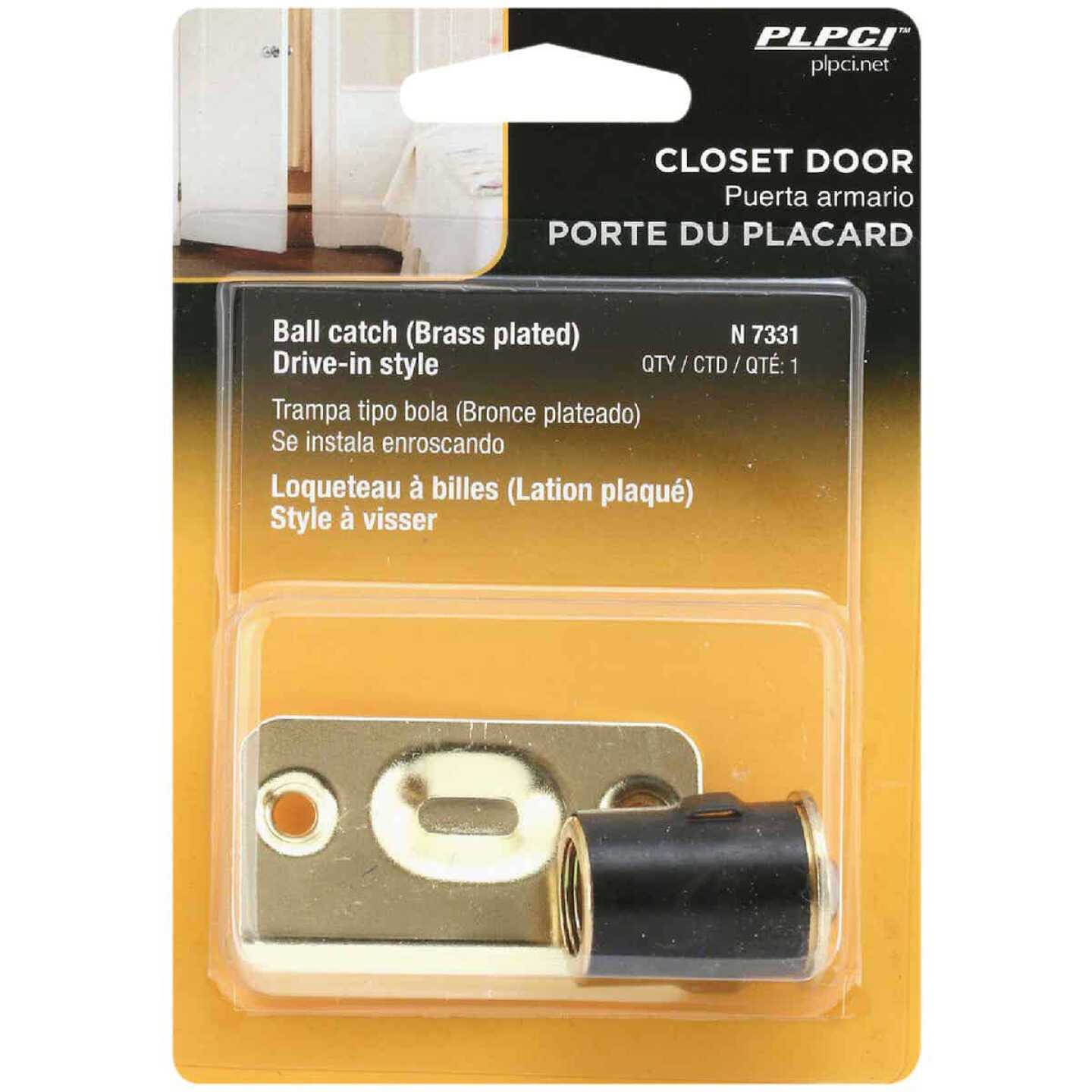 This ball catch comes in a shiny brass plating. It features an adjustable tensioned ball with a 1 in. face. This catch comes complete with fasteners for a quick and easy installation.