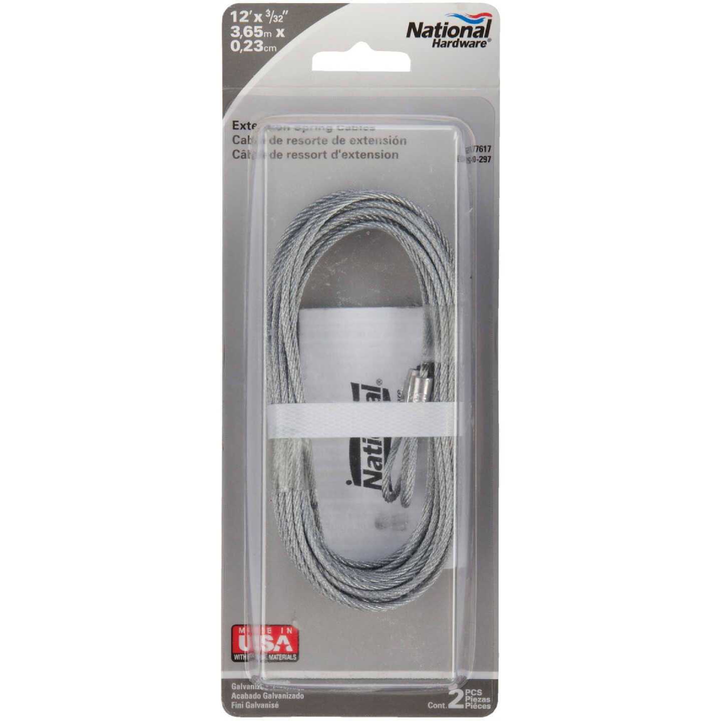 Galvanized carbon steel aircraft cables used on extension spring doors. 1/8 in replaces most wood doors, 3/32 in replaces most fiberglass and aluminum doors. This size is a good replacement for fiberglass or aluminum garage doors. This size is a good replacement for fiberglass or aluminum garage doors.