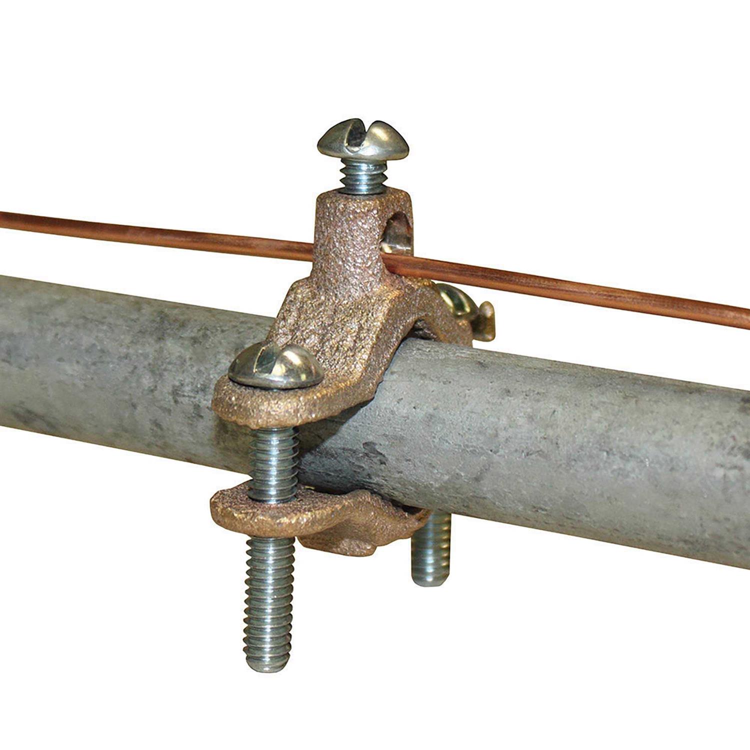 - Connects bare wire to copper or steel water pipe or tubing