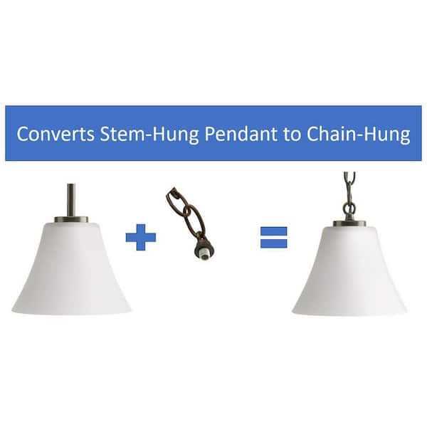 Brushed Nickel Loop and Chain Hang accessory kit converts Progress Lighting stem-hung pendants to chain-hung suspension. This options provides more precise adjustment of hanging height and installation of steeply sloped ceilings.