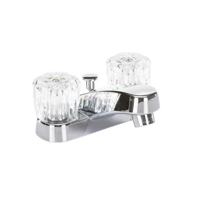 Polished Chrome, with Drain, Centerset, WaterSense 4-In centerset for easy installation Pop-up drain included 1.2 GPM WaterSense Ceramic disc valves Spout Reach: 4.7″ Spout Height: 2.3″ Maximum Faucet Height: 3.9″ NSF low lead standards ADA compliant Watersense