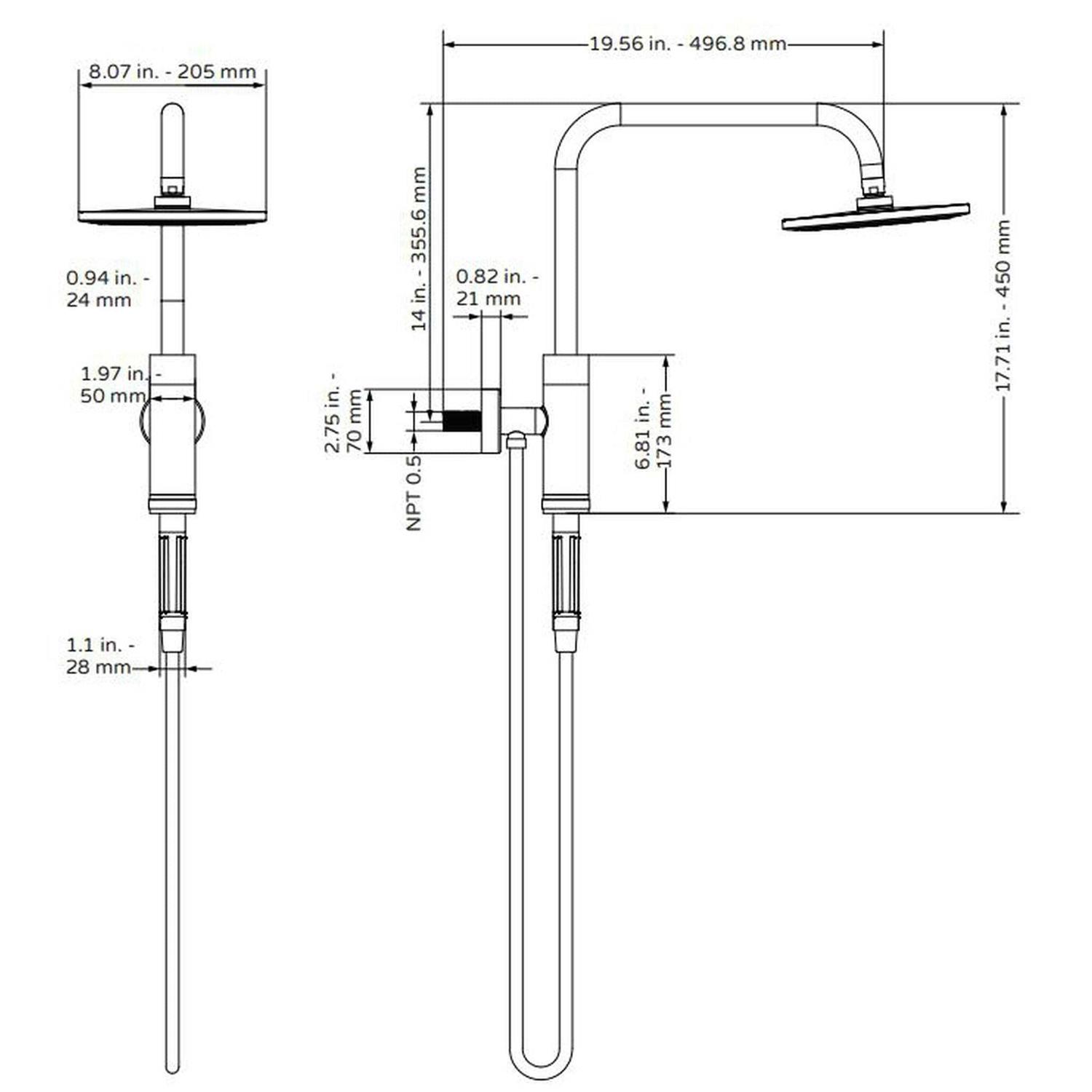 • Side to Side: 8 Shower Arm Length