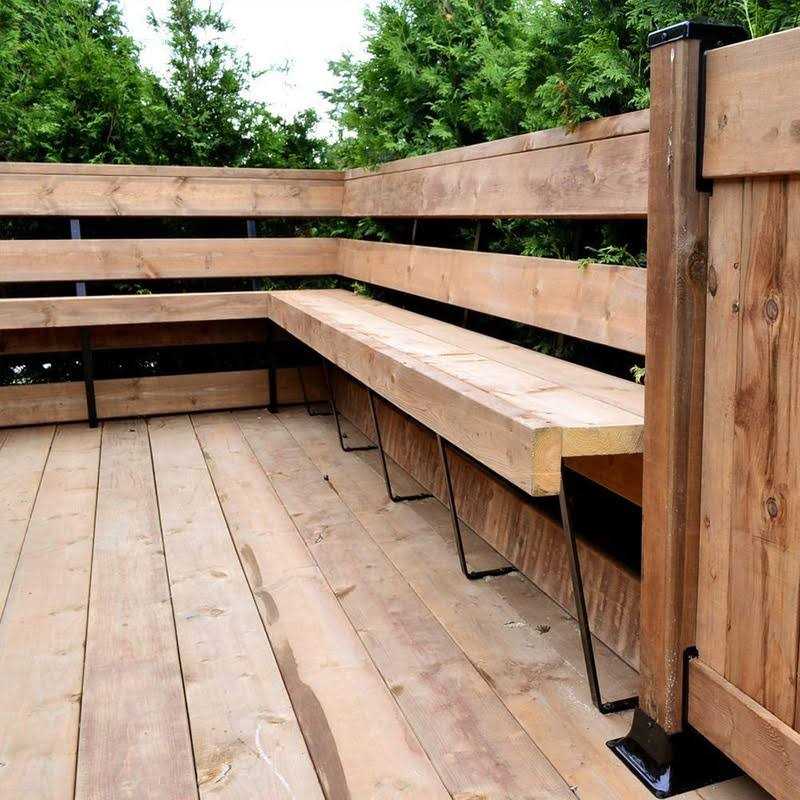 Steel bench bracket for use on decks, balconies and docks. Simple and useful, uses only 5 in. of deck floor space. Installation screws included. Made of steel. Black color. Only uses 5 in. of the deck space Baked powder coating finish provides excellent resistance to the rust Add a nice finishing touch to a deck Installation screws included Enhance the look and elegance of your patio space by installing this Pylex Black Steel Bench Bracket.