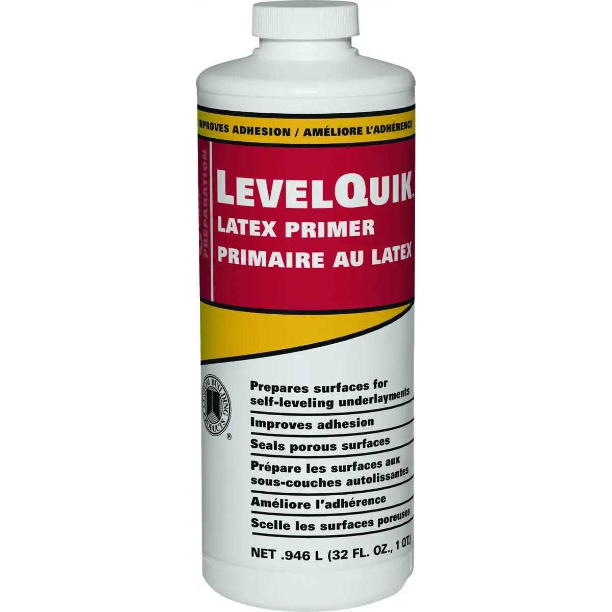 Level Quik Advanced Acrylic Primer/Sealer prepares surfaces for the application of Level Quik or Level Lite Self-Leveling Underlayments. It seals porous and non-porous surfaces and improves the bond of underlayments. Suitable substrates include absorbent and non-absorbent concrete, lightweight concrete, cement terrazzo, exterior grade plywood, Osb, cutback adhesive residue, resilient flooring. Do not bond directly to hardwood, Luan plywood, particle board, parquet, cushion or sponge-back vinyl flooring, metal, fiberglass or plastic. Do not use as a wear surface.