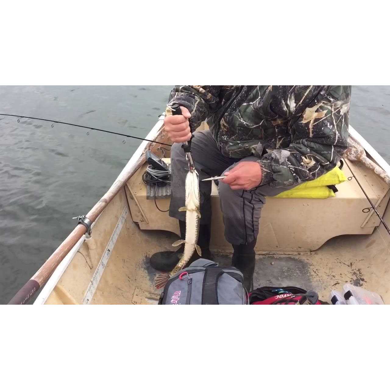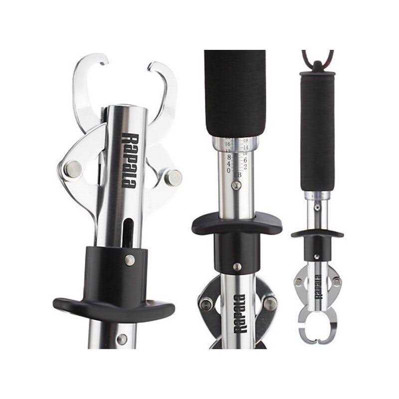 The Rapala Mechanical Fish Gripper allows you to quickly and easily lift and weigh your catch with one hand. The pull open jaws slip over the toothiest of fish, lift and accurately weigh on the easy-to-read spring loaded scale. The quick release mechanism allows anglers to send the catch back to fight another day. The Rapala Mechanical Fish Gripper features a soft grip handle to provide the ultimate in slip resistant grip and comfort, while the wrist lanyard ensures only the fish goes back in the water. Its corrosion resistant aluminum construction will provide service for years to come. The scale provides weight measurements in one pound increments up to 50 pounds.