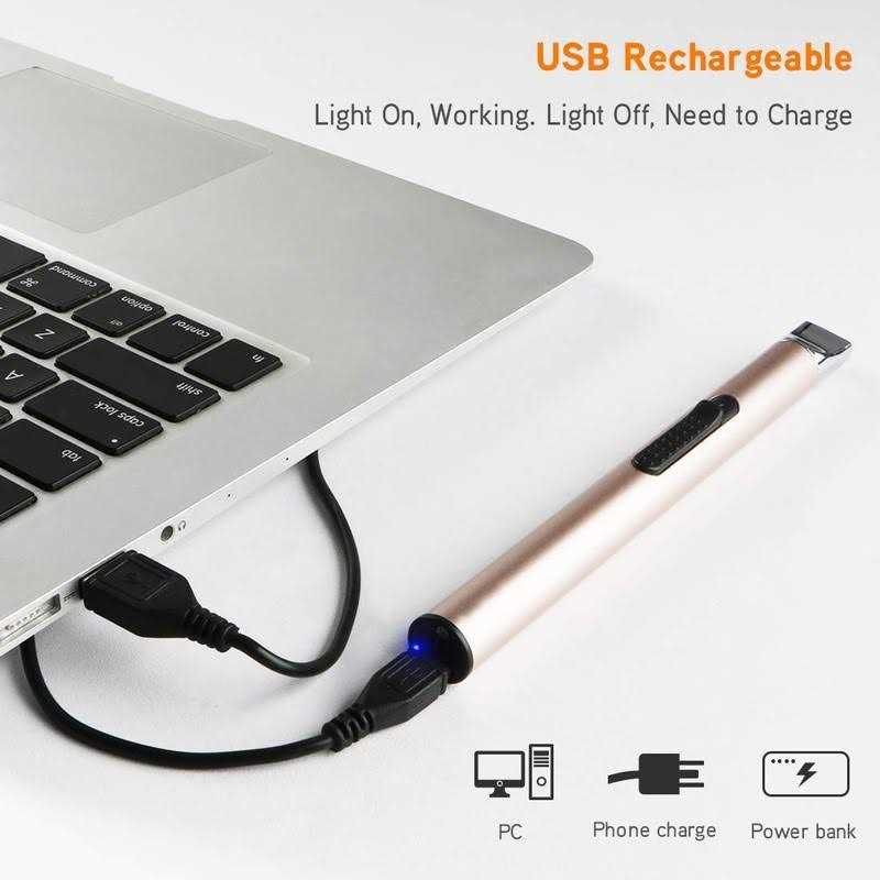 Expecting for lighting candles, gas stoves, cooking and other indoor activities, With the windproof design, its also a perfect tool for outdoor activities, like firework, BBQ, camping and so on. Get rid of all the troubles brought by traditional lighter, let ignition become easier and more fun. Easy to carry and use, suitable for various situation, it can be charged through mobile devices in time even if you are outdoors. Cleaner Useful Safer Exquisite Faster