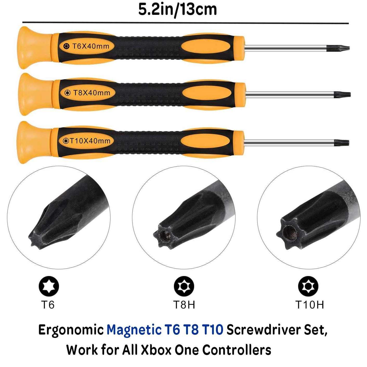 - Multi-function:Professional repair tools kits for Xbox repairing. Torx T6, T8 and T10 screwdrivers are suitable for Xbox Xbox one controller Xbox 360.