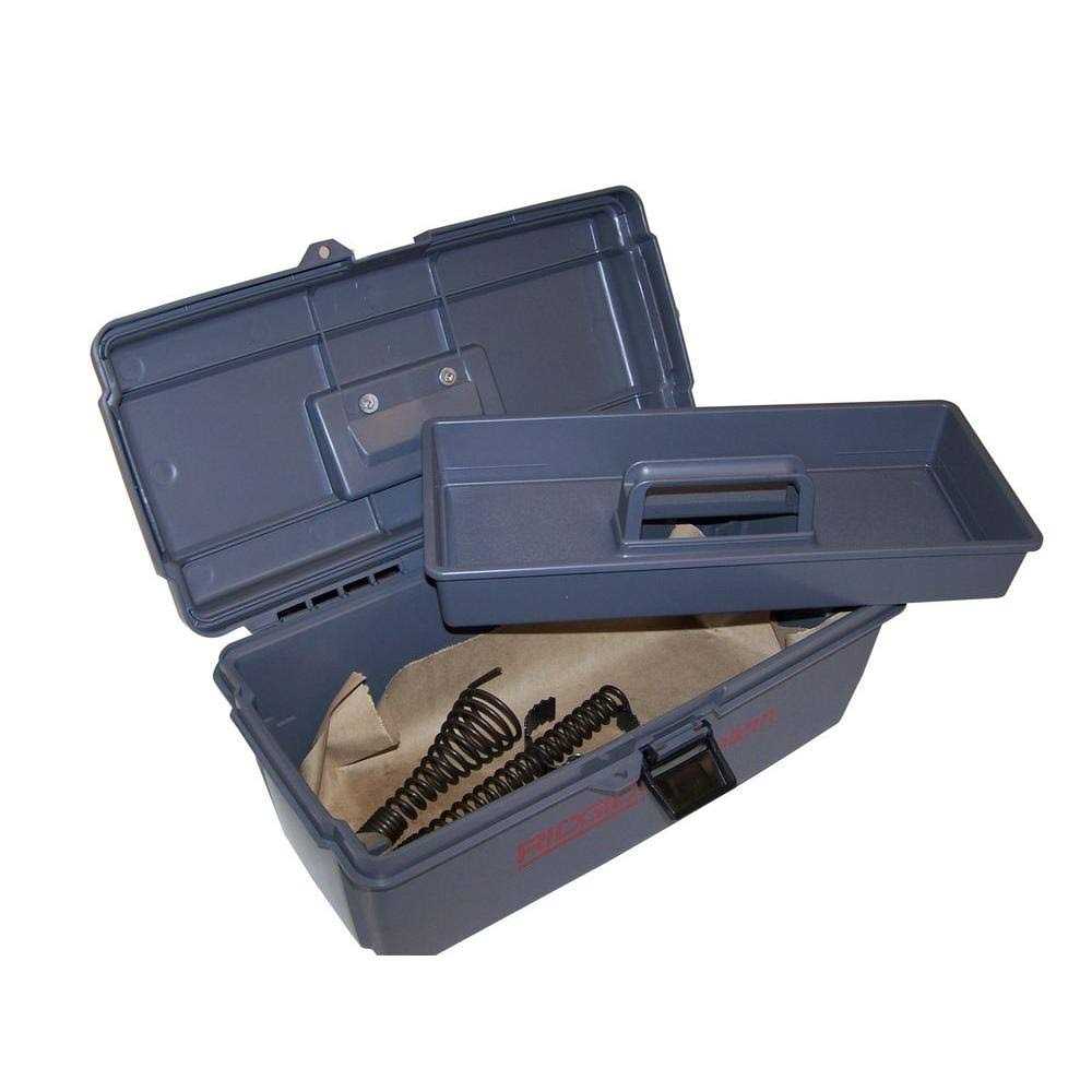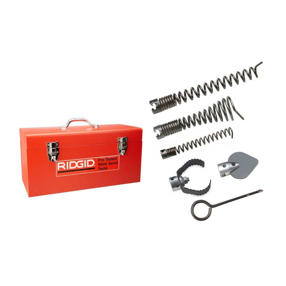 This set of sectional machine tools can help you clear away tough obstructions. It comes with a toolbox and several augers, cutters and more.