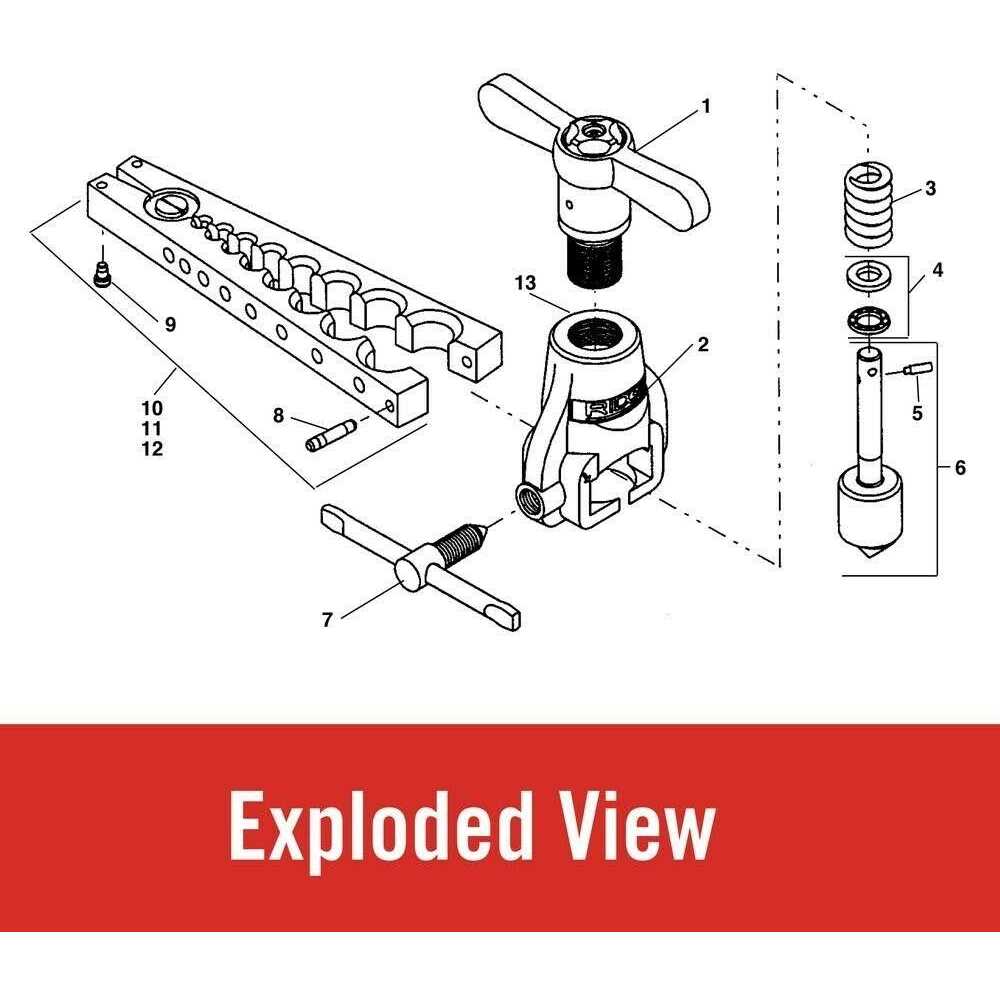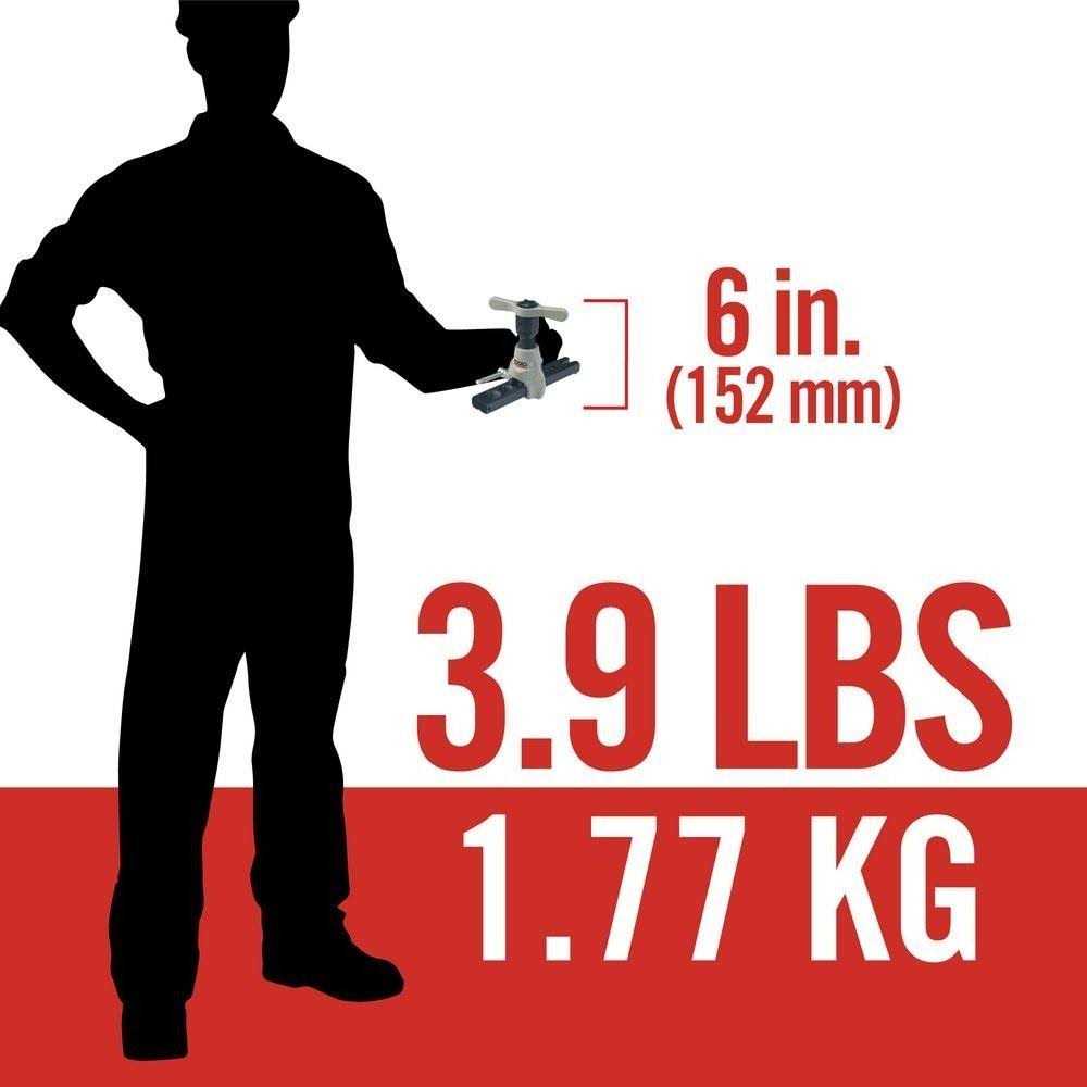 • Easy-to-use ratcheting handle reduces user effort, even in confined workspaces; handle clutch releases when flare is complete to iron and smooth flare