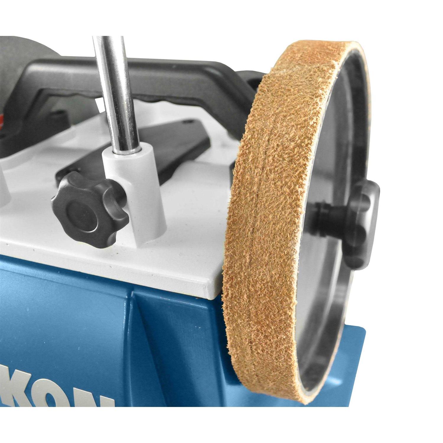 - Leather honing wheel for final edge sharpening and honing