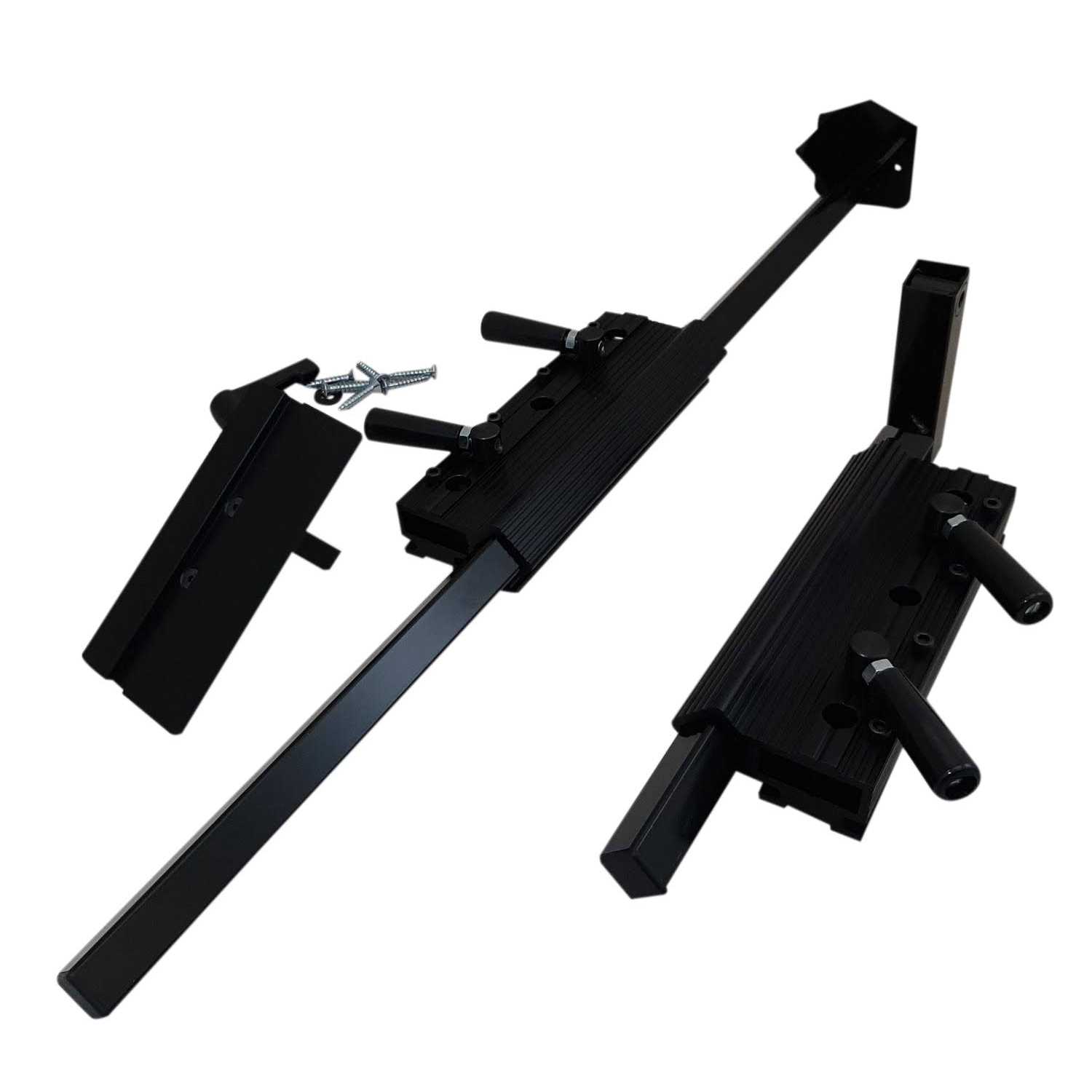- Includes base assemblies, long arm, platforms, adjustable lever handle and hardware