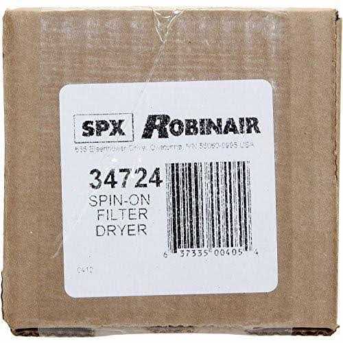 The Robinair 34724 is a recycling filter drier spin-on filter that is specially blended for maximum acid and moisture removal. For the Robinair 17700-2K, Robinair 34134A, Robinair 34134-2K, Robinair 342000, Robinair 34234, Robinair 34300-2K, Robinair 34700, Robinair 34700-2K, Robinair 34700Z, Robinair 34788, Robinair 34800, Robinair 34800-2K, and Robinair 34900.