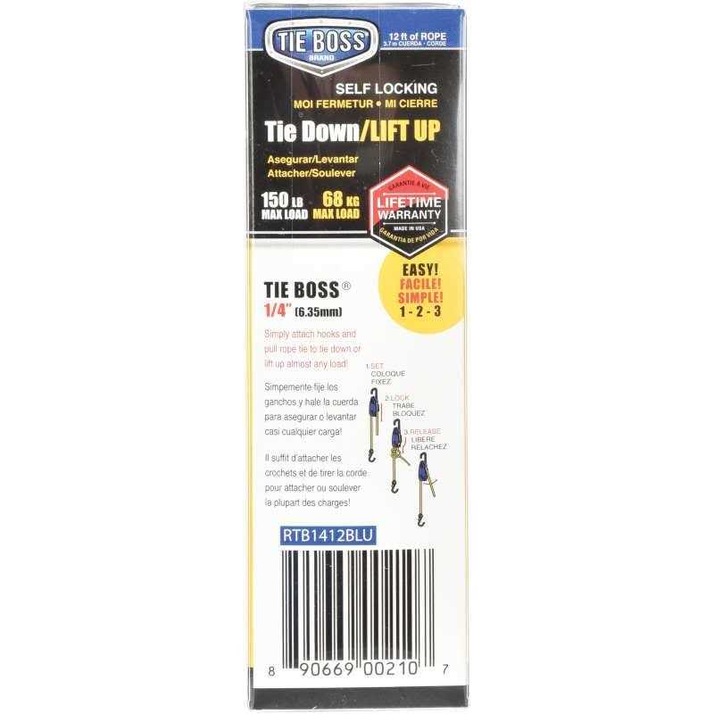 It contains no moving mechanisms to fail or jam, and you can quickly set the length and tension needed with just a one-handed pull, then lock it down by slipping the free end into the toothed cleat. The braided polypropylene rope will not stretch, slip or loosen in use, and releases instantly with a tug on the free end. The cleat is made of glass-reinforced nylon. The smaller model comes with 12′ of 1/4″ diameter rope (150 lb max. load); the heavier-duty model comes with 10′ of 3/8″ diameter rope (300 lb max. load). In addition to tie-down use, each can also serve as a pulley for manually raising, lowering or dragging heavy loads. Sold individually. Highly recommended.