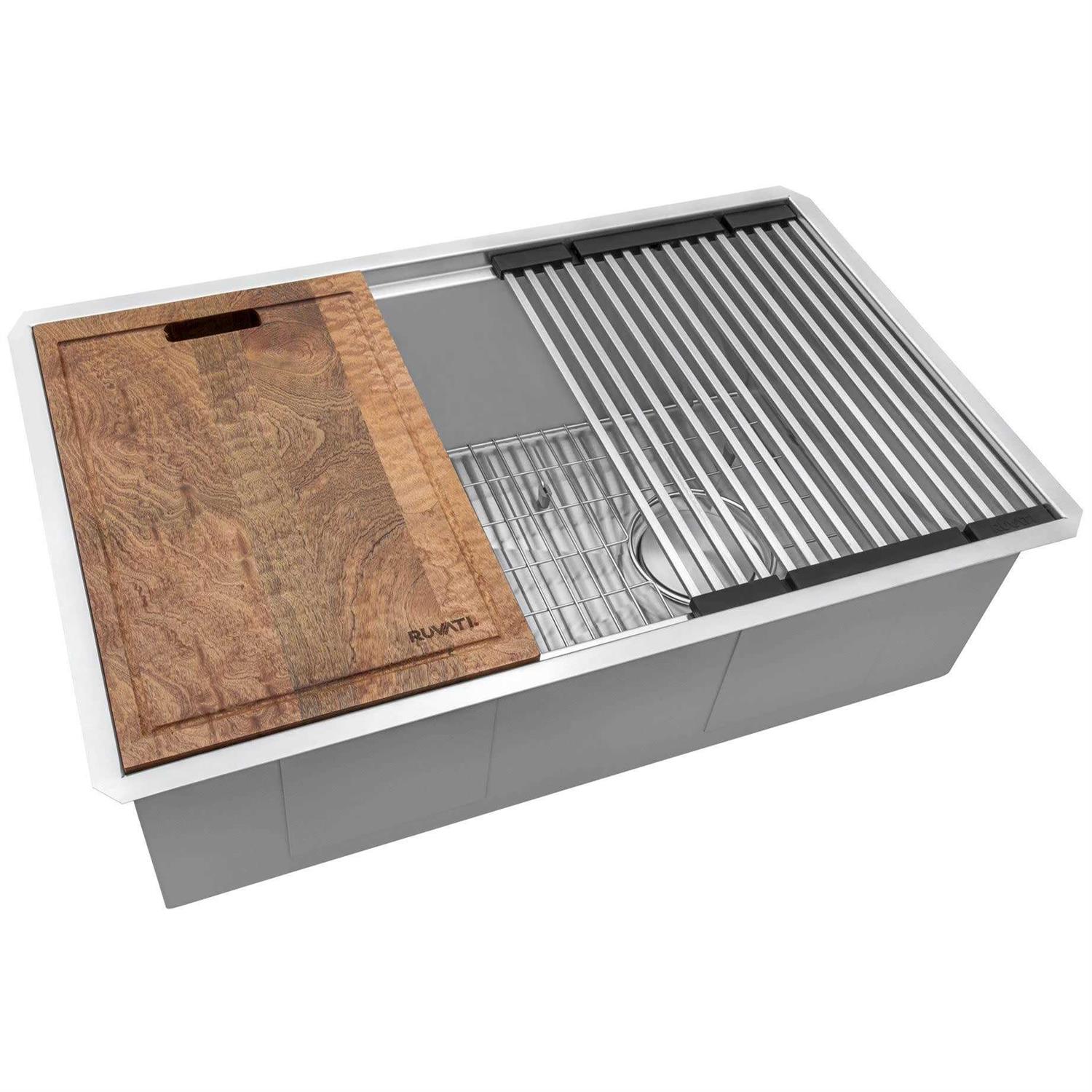 Ruvati 33″ Workstation Slope Bottom Offset Drain Undermount 16 Gauge Kitchen Sink RVH8591