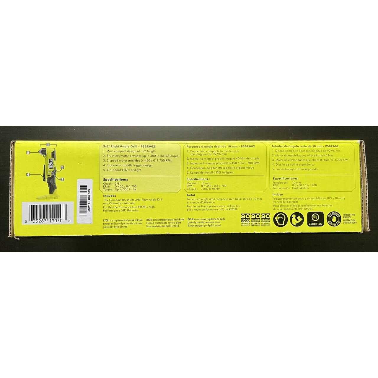 Ryobi One+ HP 18V Brushless Cordless Compact 3/8 in. Right Angle Drill (Tool Only)