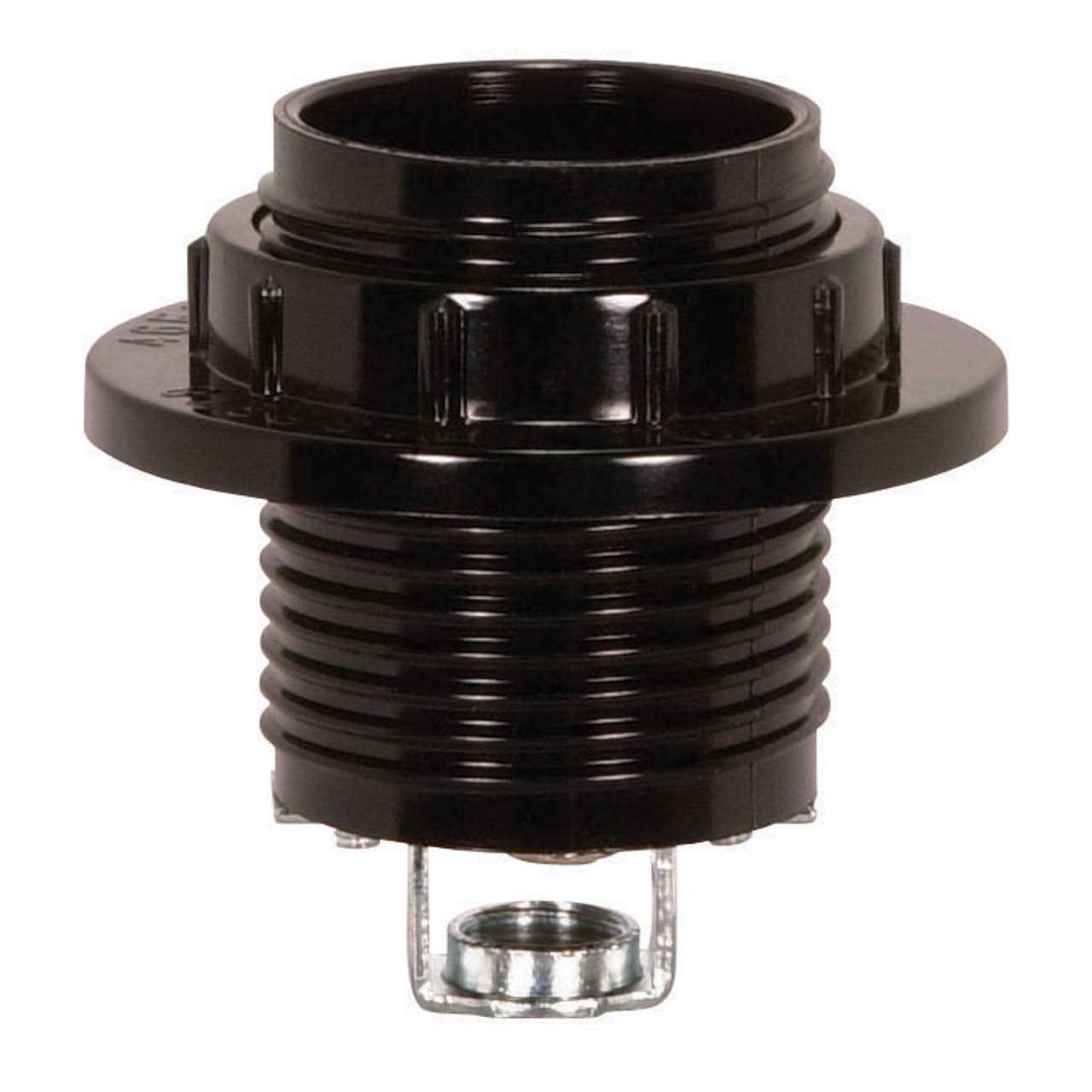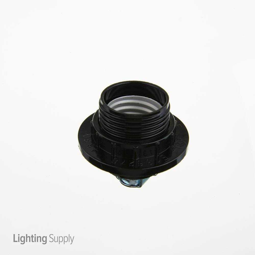 Satco Keyless threaded socket with ring, comes in black color and has phenolic body for added durability. It supports screw terminal connection and 1/8-Inch IPS hickey mounting. It has a voltage rating of 250-Volts and power rating of 660-Watts. It is suitable for E26 medium base lamps. The threaded socket is cULus certified.