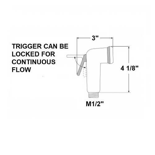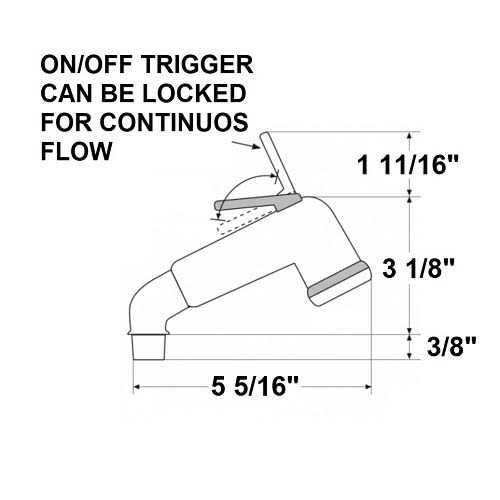 Sold as unit of measure: EAThese reliable plastic and chrome/brass sprayers have an on/off trigger or flip up for continuous water flow. 1-1/16″ Mounting hole. 3/8″ BSB thread.