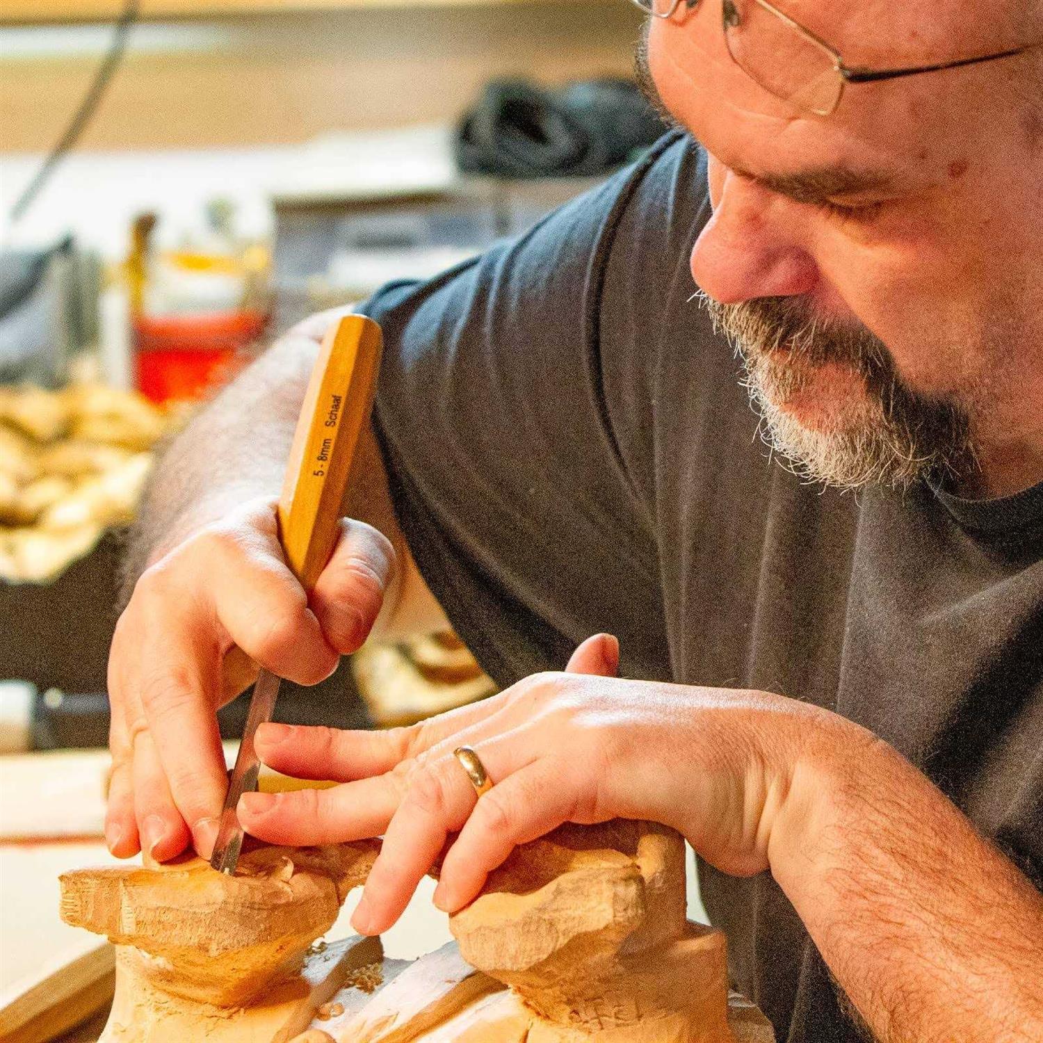 Start any Project – This wood chisel set features 12 versatile profiles you need to start any beginner carving project: relief carvings, wood spirits, house signs, caricature figures, bowls and spoons. Carve Longer – Each tool is made from high quality alloy chromium-vanadium steel and hardened to Rockwell C60, so blades will hold an edge for a long time and won’t dull quickly with repeated use. Last a Lifetime – Schaaf Tools prides itself on using high-quality materials. Sturdy, hefty blades are designed to withstand heavy mallet use. European style octagonal ash wooden handles prevent tools from rolling off your workspace. Learning Material – eBook included with helpful info about how to sharpen and care for your tools, along with other carving tips and techniques. Schaaf Tools Beginner Wood Chisel Set features 12 essential wood carving tools you need to start any carving project, from an intricate relief panel to a life-sized bust, or from a house sign to a caricature figure. These hand-selected carving gouges and chisels allow beginners to get started carving, intermediate carvers to add to their collection, and professionals to have a backup set or a set to grind at a different bevel. This woodworking tool set accommodates everyone. While it is possible to start carving with this factory-sharpened chisel set immediately, the edges will cut better with a bit of finessing and polishing. Professional and intermediate carvers will jump right in, grind or stone the bevels to their favorite angle, polish the edges, and start carving. The factory set the bevel at the most useful angle for most carvers, so along with the complimentary eBook on sharpening, even beginners should be able to polish the edge and get carving right away.