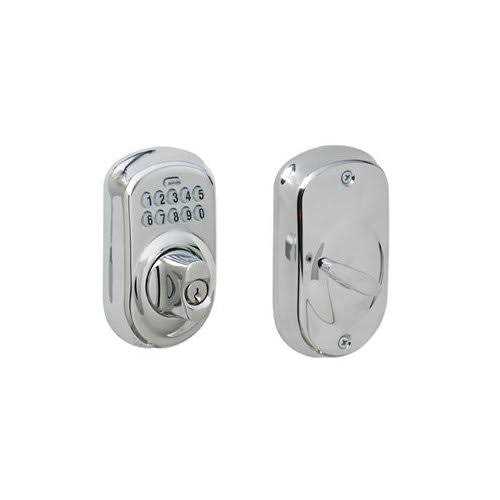 Schlage Plymouth has a innovative Turn Lock feature allows you to lock & leave without a key. Provides the convenience of keyless access; customizable to fit your security needs. Ideal for front doors, side & back doors, garage entry doors, etc. Easily replace most existing deadbolts with a screwdriver in about 30 minutes. No programming required; preset with two user codes so it’s ready to use right out of the box. Fits standard door prep. Easy installation, no need to run wires as it is battery operated with over 3 year battery life. Certified Commercial Grade 2.