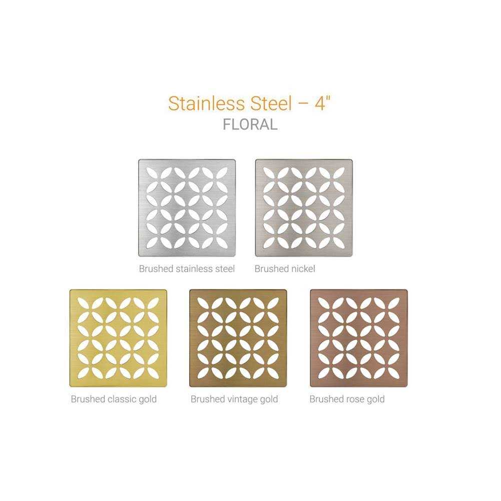 Schluter Kerdi Drain Grate 4″ Square Brushed Classic Gold Floral
