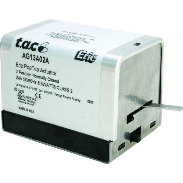 PopTop 2-Position Actuators – The following tables contain a complete listing of Erie 2-Position actuator combinations for 24 and 120 Vac. The same combinations are available for 208 Vac D designator and 230 Vac U designator. FEATURES Sized to fi t most baseboard applications. Terminal block option. UL Listed.