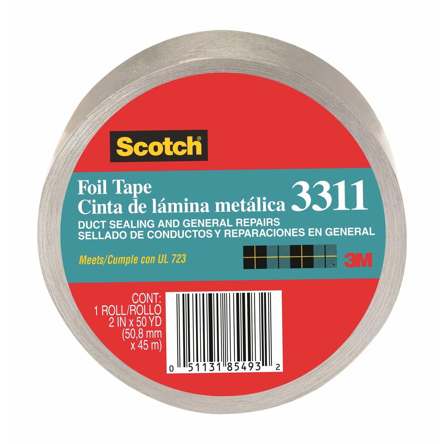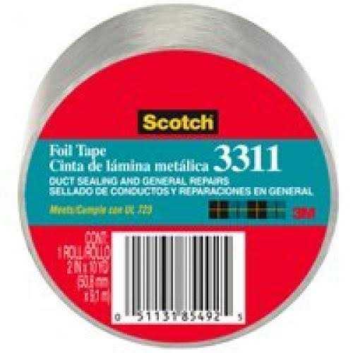 Scotch-« Foil tape 3311 is a conformable tape with silicone-treated liner that unwinds easily to minimize errors and wasted tape. It is flexible and easy to apply in tight spaces, making it the ideal tape for duct repairs. The soft aluminum foil also conforms to irregular surfaces and provides a reliable vapor barrier.