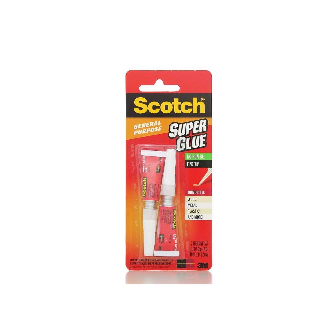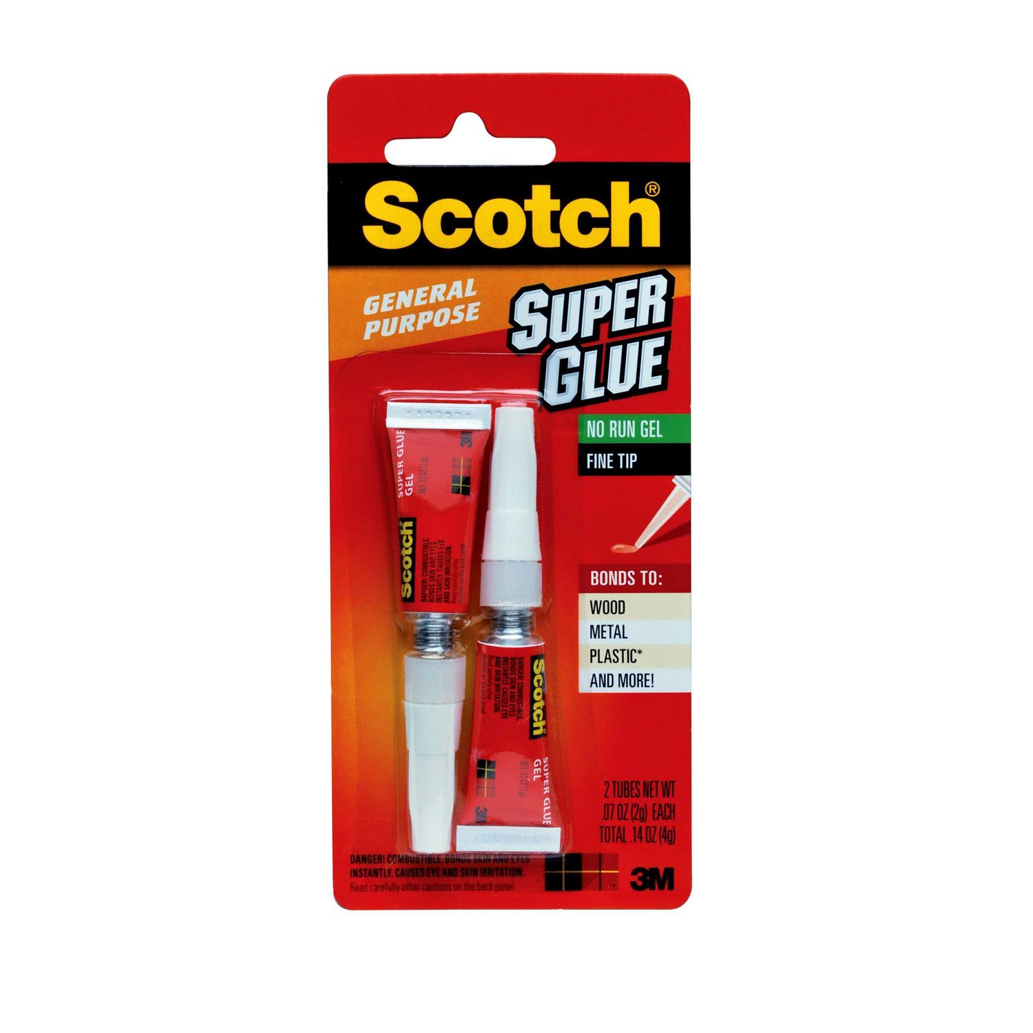 Bonds to: wood, metal, plastic (Not suitable for polystyrene foam, foam rubber, polyethylene and polypropylene), and more! Scotch General Purpose Super Glue Gel is a fast-drying, no run adhesive designed for a wide variety of surfaces. Good for wood, metal, leather, ceramic, rubber, plastic (Not suitable for polystyrene foam, foam rubber, polyethylene and polypropylene).