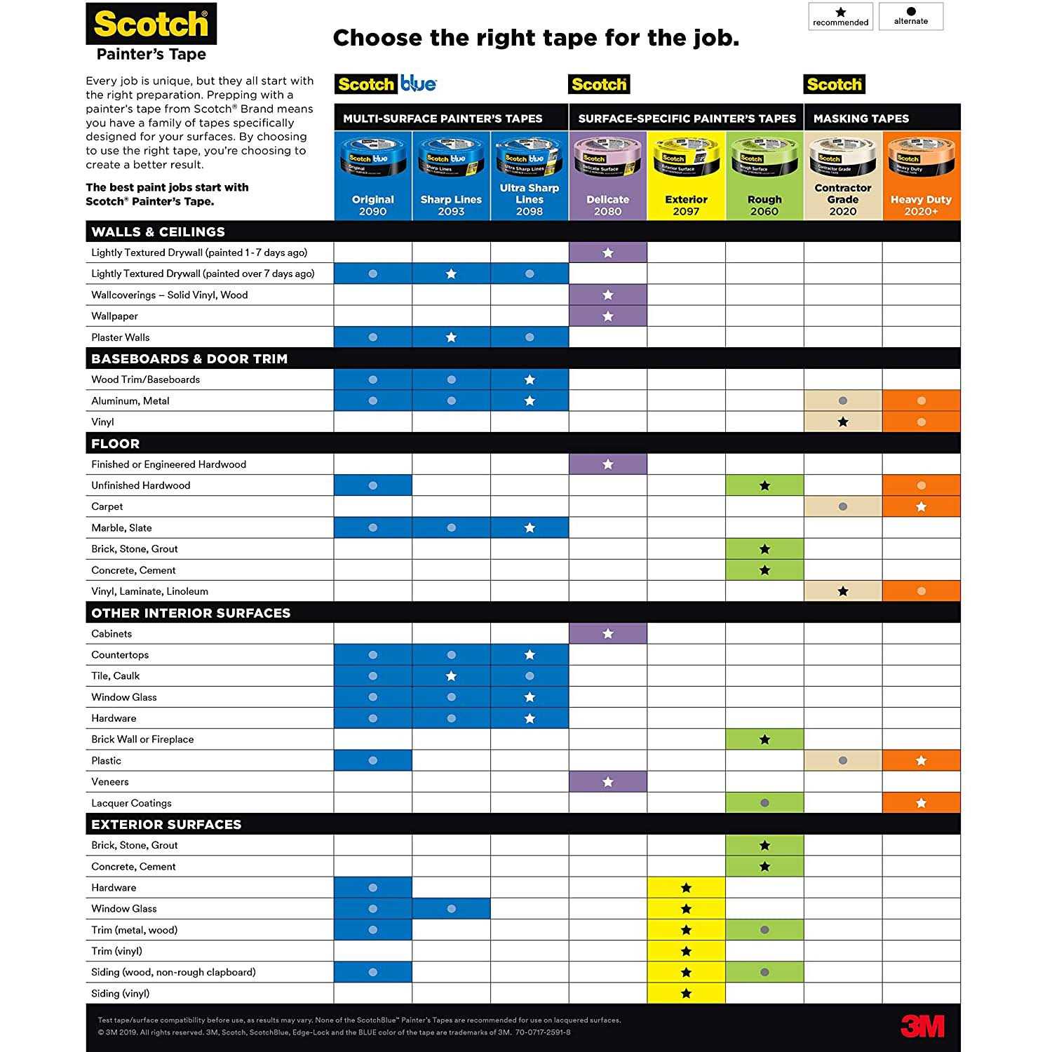 Scotch Heavy Duty Masking Tape features a high visibility orange color with a thick, robust backing. Designed for interior or exterior job site paint masking applications on non damageable surfaces. Use on vinyl, carpet, metal and plastic. This tape holds to surfaces for up to 3 days and then removes easily without leaving any sticky residue behind. For great paint results, make sure the surface is clean, dry, and dust-free so that the tape sticks properly. Next, apply the Scotch Contractor Grade Masking Tape onto the surface while pressing down firmly as you go. Let the tape set for about 30 to 60 minutes before painting for an optimal bond. Once finished painting, make sure the paint is completely dry before removing the tape. To properly lift it up, start by slowly pulling the tape back on itself before removing at a 45-degree angle.
