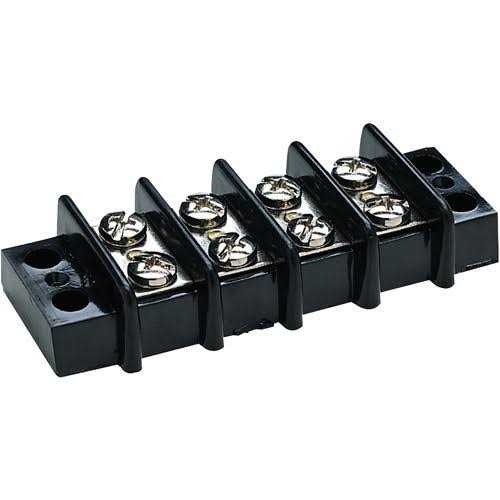 Corrosion resistant construction. Moisture repellent bakelite insulator base. nickel plated brass terminals and #8-32 screws. Protective insulator barrier strips. Rated for 30A @ 12V.