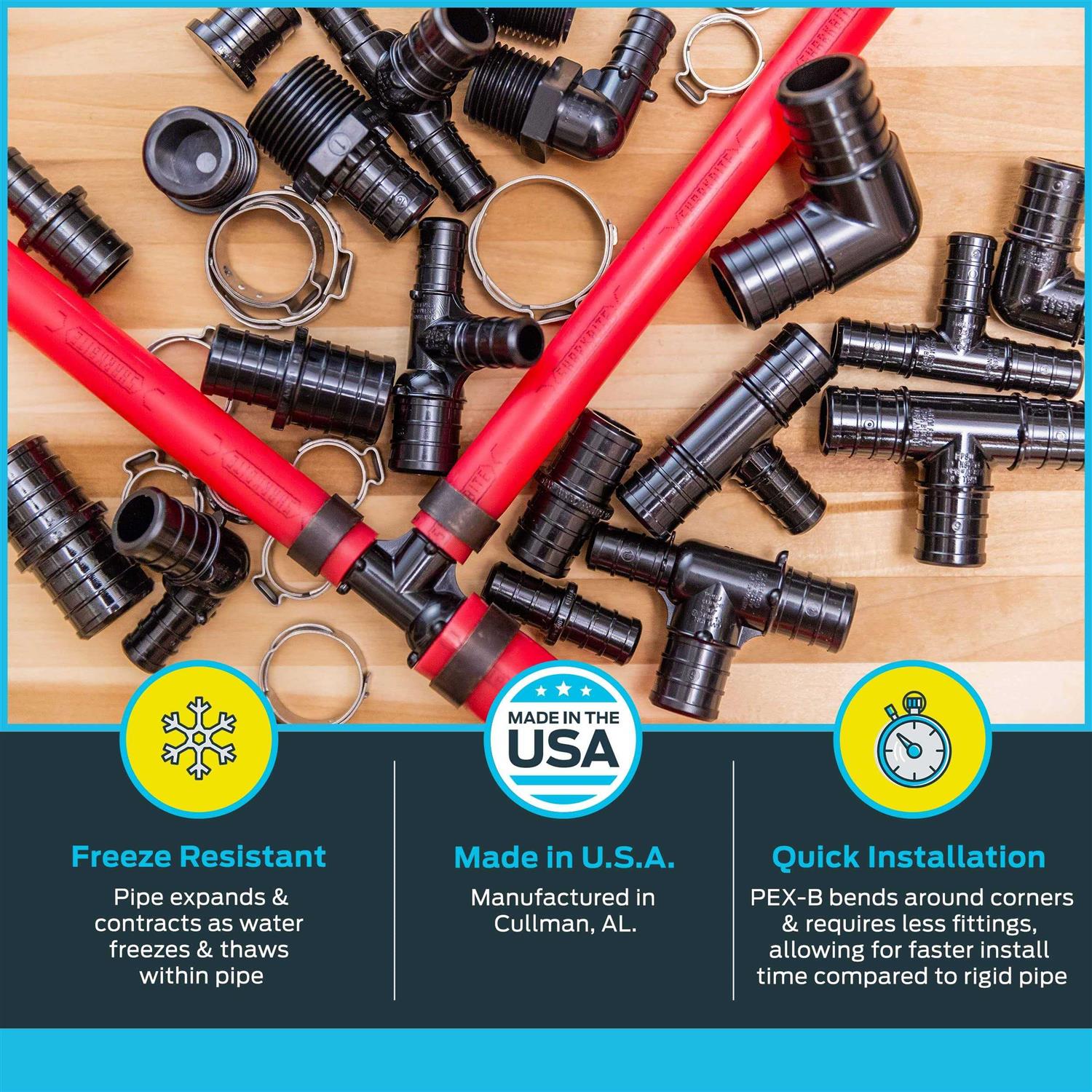 - Strong, flexible, corrosion/freeze-resistant pipe designed for hot or cold plumbing applications