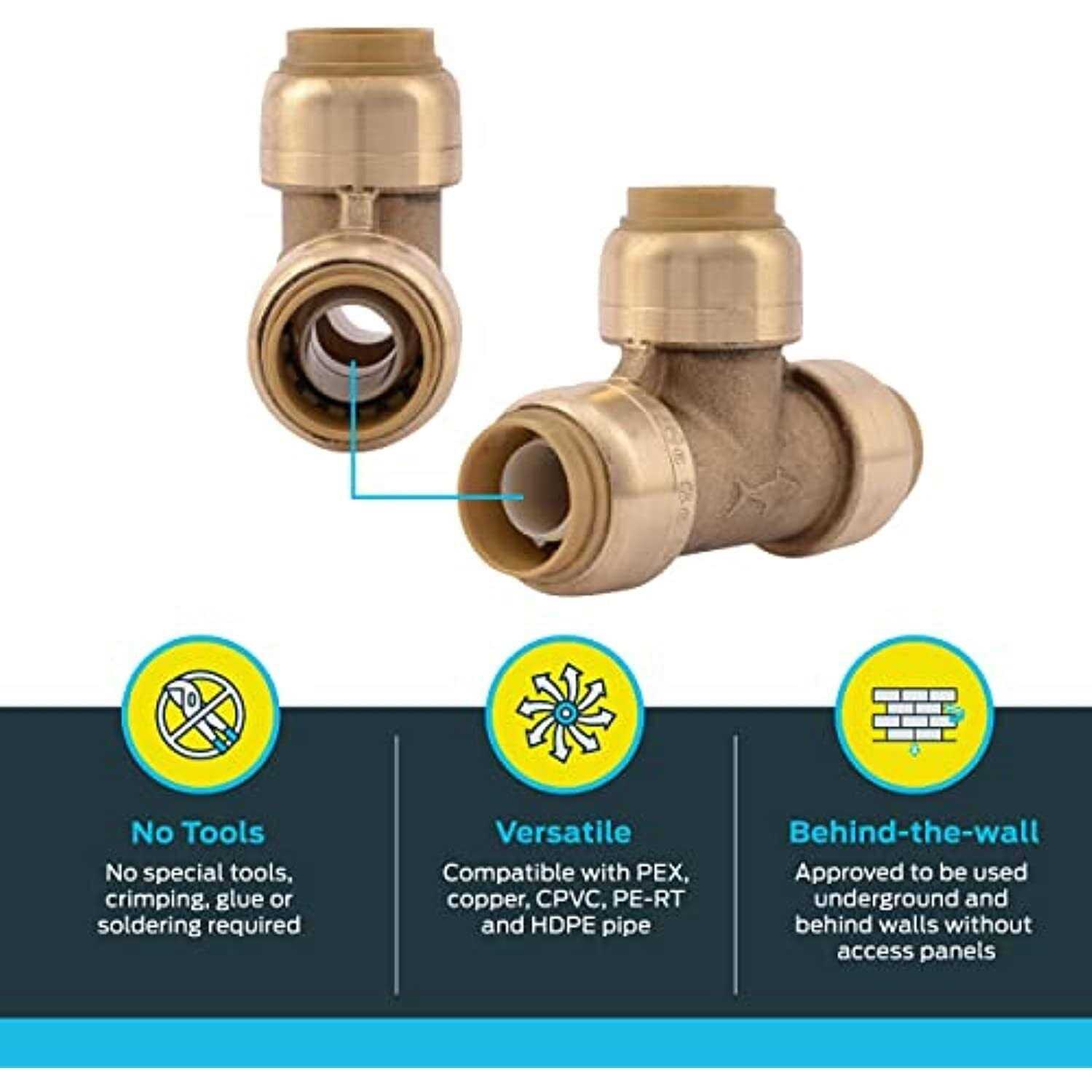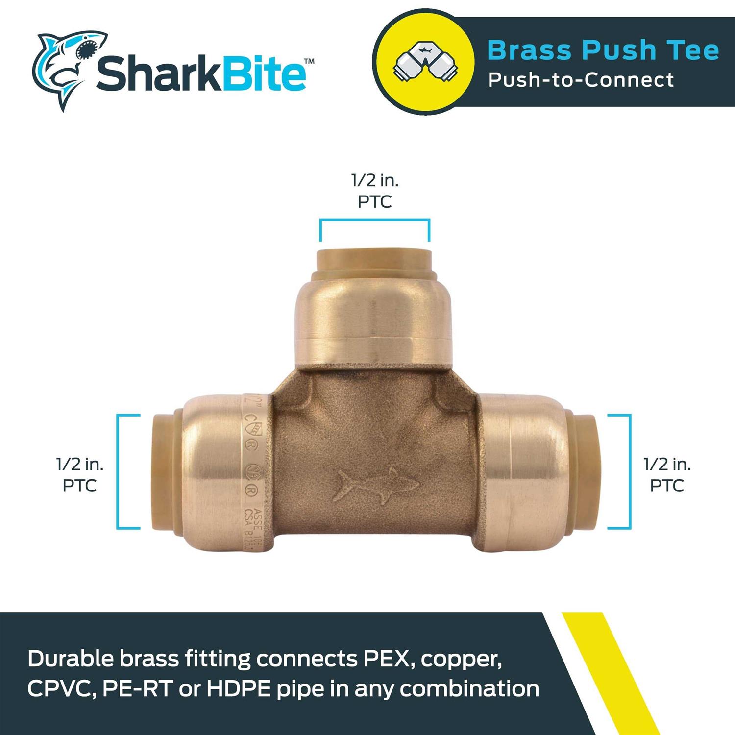 SharkBiteA Tees are push-to-connect and are capable of connecting copper, PEX, CPVC or PE-RT tubing in any combination. They are rotatable after assembly which makes for easy installation even in cramped working conditions. Instant push-fit connection for increased ease of use Compact, robust lead-free DZR brass body Foundation of a strong, corrosion-resistant, durable fitting Model Number: 6352835. Age Group: adult.