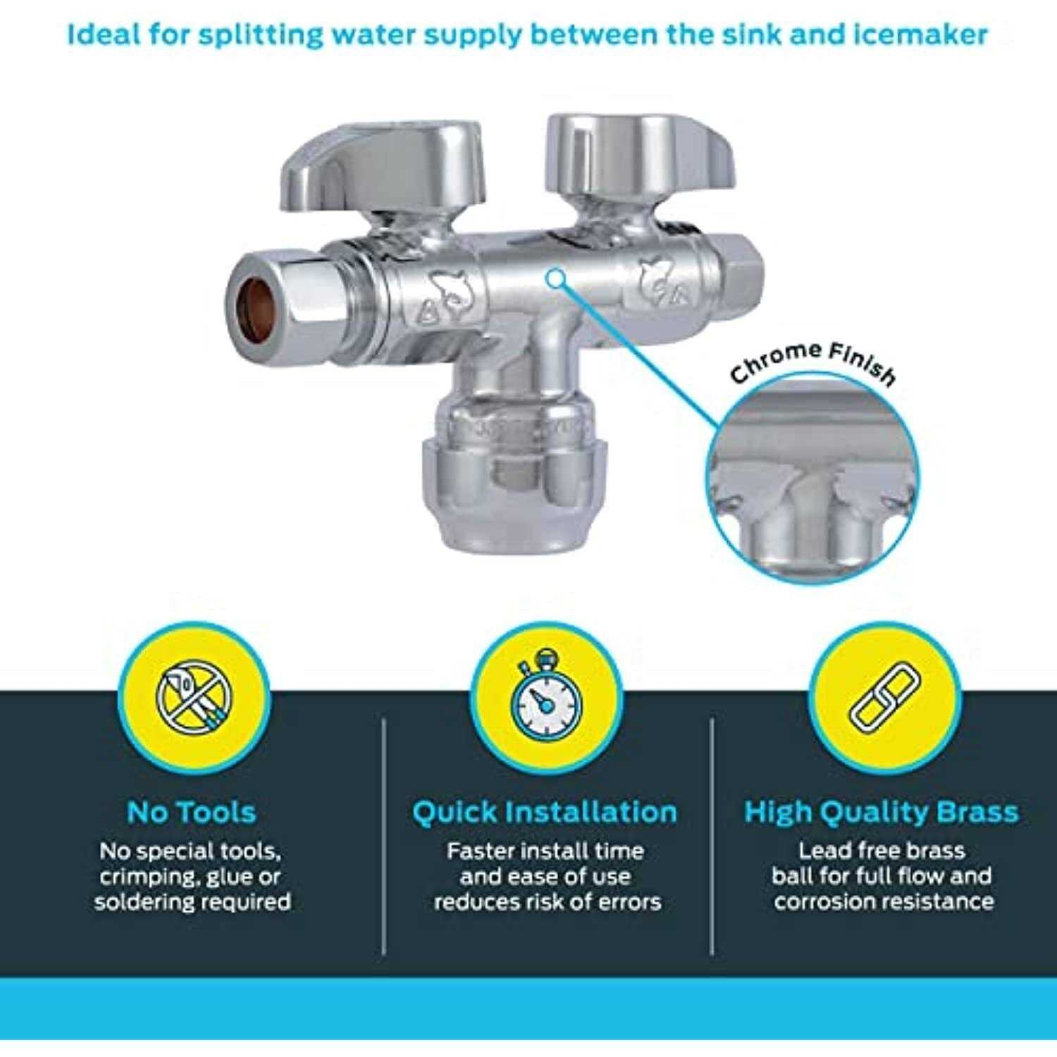 - EASY TO USE: Water valve features an innovative push-to-connect design which allows for quick and easy installation