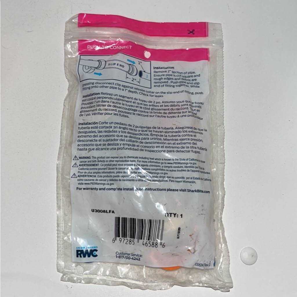 Push Fit Repr Cplg 1/2×1/2 The SharkBite Connection System is an instant push-fit connection that connects copper tubing, CTS and CPVC pipe in any combination – no soldering, clamps, unions or glue required. Certified to 200 PSI and 200DegF. Compact, robust DZR brass body. Foundation of a strong, corrosion resistant, durable fitting. Design certified to ANSI/NSF-61 and ASSE 1061 product standard for use in potable water and hydronic heating water distribution.Approved to be used underground and behind walls without access panels.
