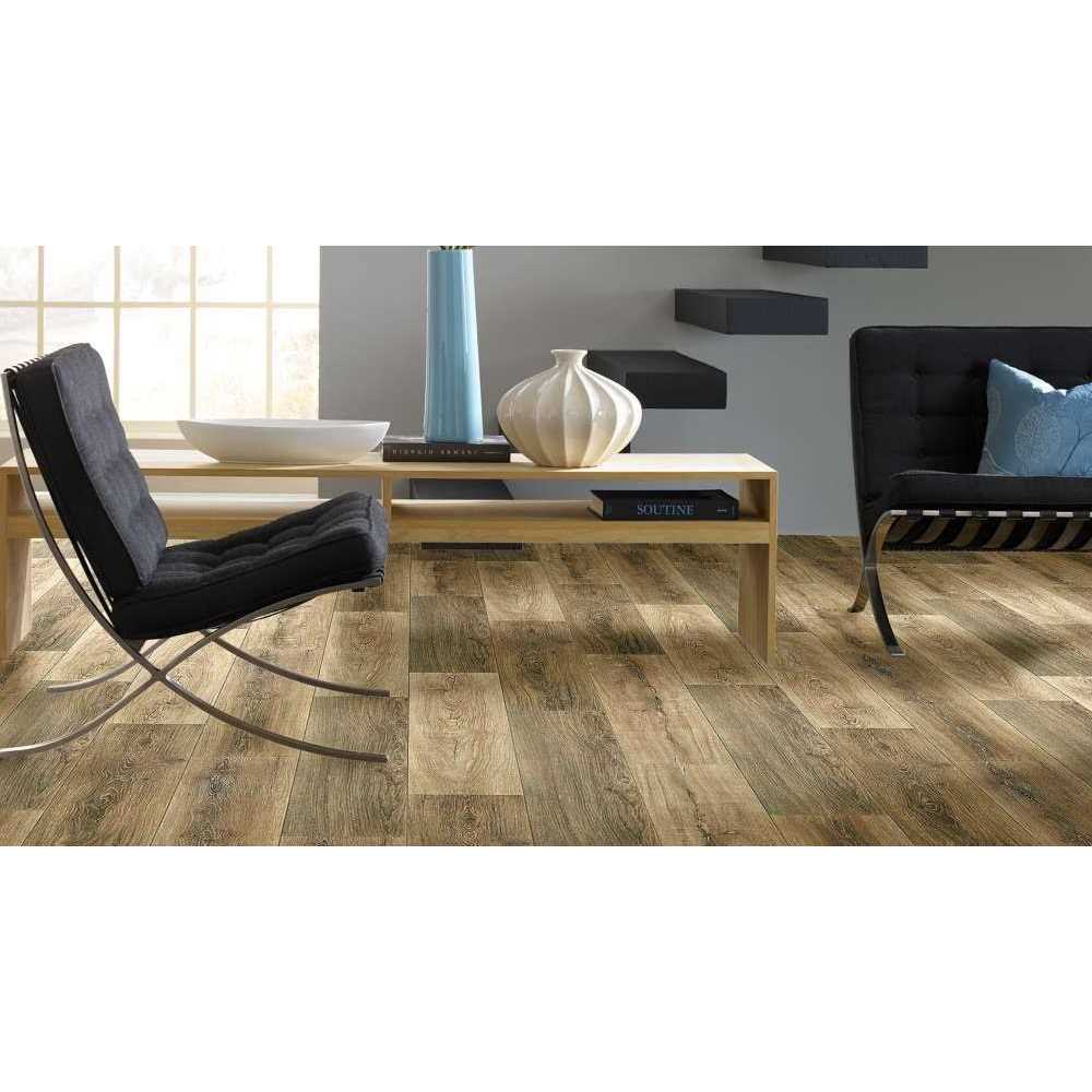 Tenacious HD+ Accent is a wood visual SPC 7 In. x 48 In. plank product that is Embossed In Register and printed in High Definition to mimic the knots and grain of real wood. The planks are accentuated by a four-sided accent bevel and have a high variation visual ranging from lights to darks. From Shaw’s Floorte Pro collection of waterproof products Tenacious HD+ Accent is protected with ScufResist Platinum and is great for great for kids, pets, and everyday life. Features Soft Silence pad for noise reduction and added comfort. Floating or glue installation above, on, or below grade.
