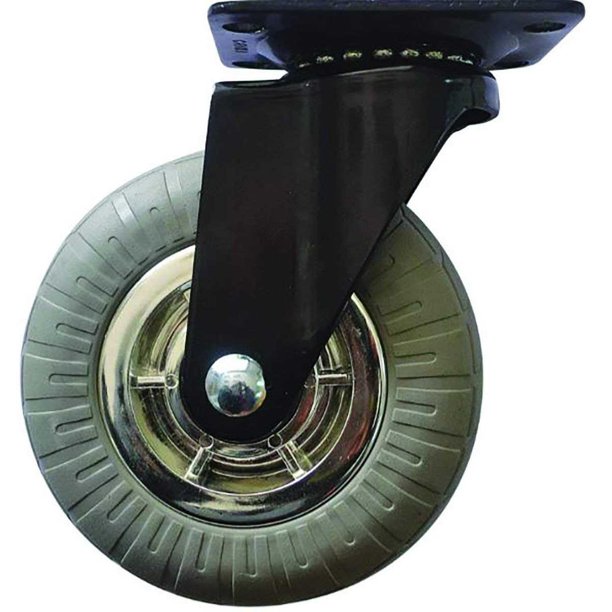- 1-1/2-inch wide x 5-inch diameter soft foam rubber grey wheel with Chrome spokes and black double ball bearing swivel plate mount
