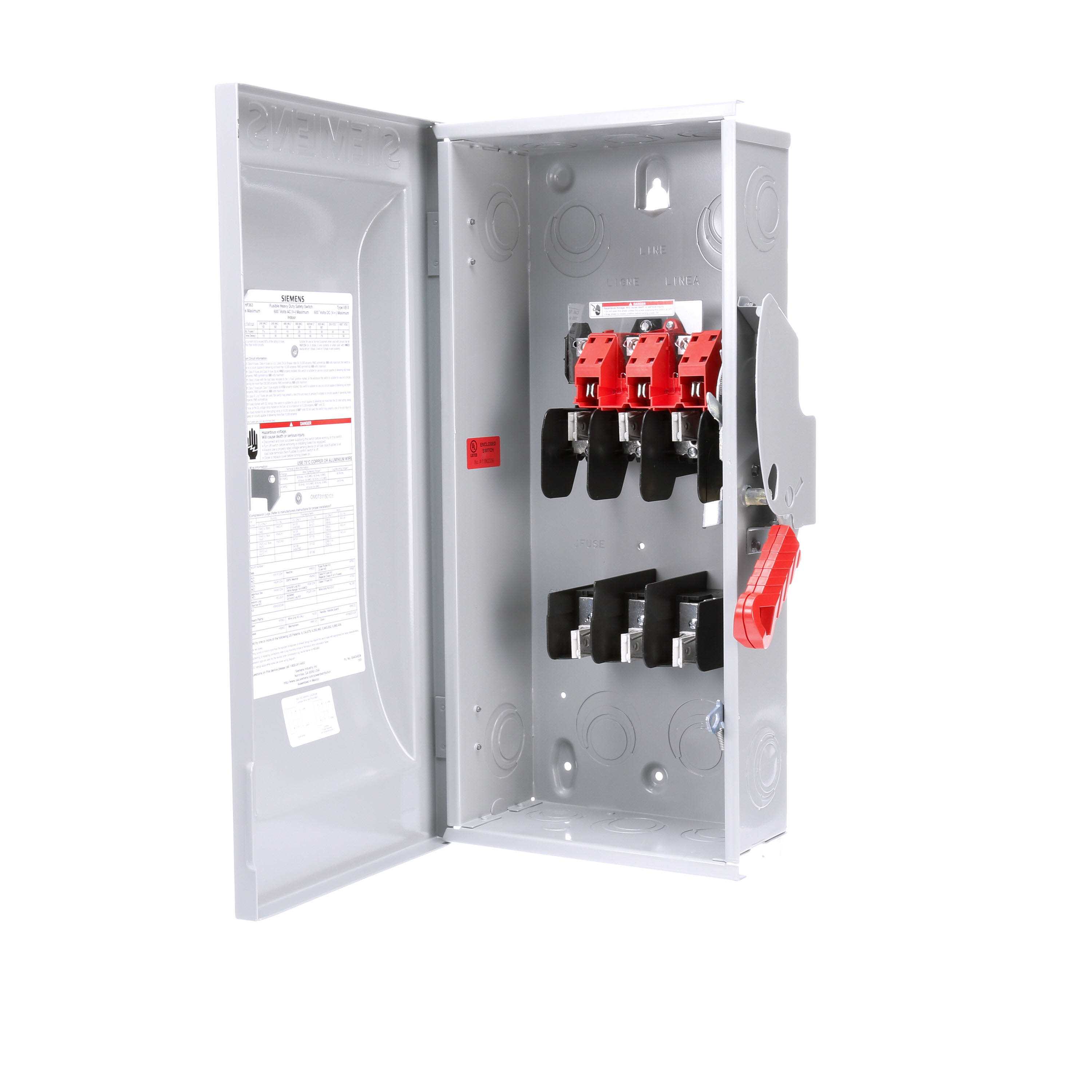 Siemens HF365A – Elevate your power control with Siemens Heavy Duty Safety Disconnect Switches offering a range of 30 to 1200 A ratings in 2 3 4 and 6 pole versions. Designed for diverse environments these switches come in Type 1 3R 12 and 4X enclosures. Choose between fusible models for 240 V AC max. or 600 V AC/DC applications and non-fusible versions with a 600 V AC max. rating. Experience advanced fusing options from Class H to Class R and Class J while auxiliary contact kits enhance versatility. With UL98 UL508 and UL1741 PV listings these switches ensure safety and compliance making them a reliable choice for seamless power control and protection.