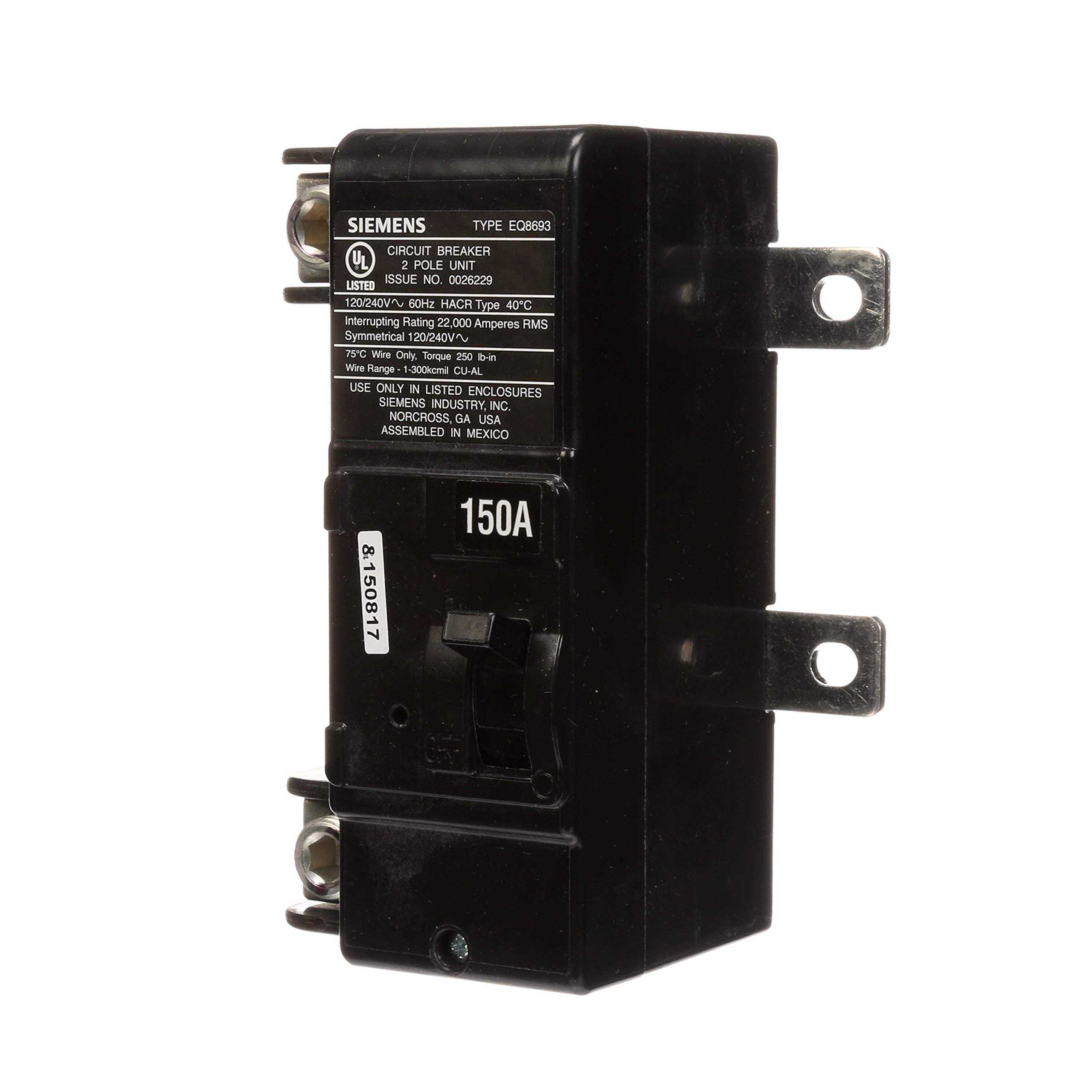 This 150 Amp main breaker kit is intended as a replacement for main breakers installed in the Siemens EQ series of load centers. The kit can be installed on Siemens EQ 150 and 200 Amp main breaker load centers. The production of EQ load centers was halted in 2002, being replaced with the Siemens Ultimate series of load centers. This kit will not fit on the Ultimate, ES, or PL series of load centers. Check the panel wiring diagram to determine the series type.