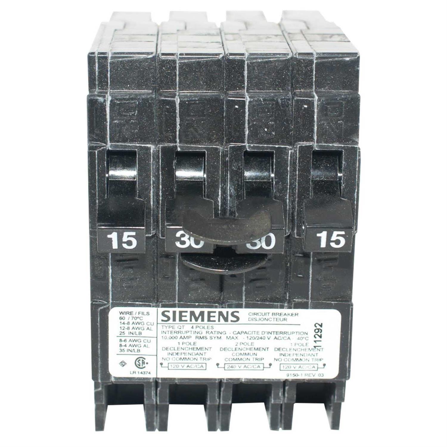 Siemens space saving, plug in circuit breakers are intended for use in Siemens EQ, Siemens Ultimate, ITE, and Gould load centers and meter combinations that are rated to accept type QT breakers. Check wiring diagram to confirm. The triplex breakers provide two single pole and one double pole breakers in half the space. These triplex, 1/2-Inch frame breakers are ideal when new circuits are required in a panel that has no available spaces. Siemens strongly recommends against the use of “used” breakers. Siemens does not sell used breakers and has not approved any 3rd party sellers to do so.
