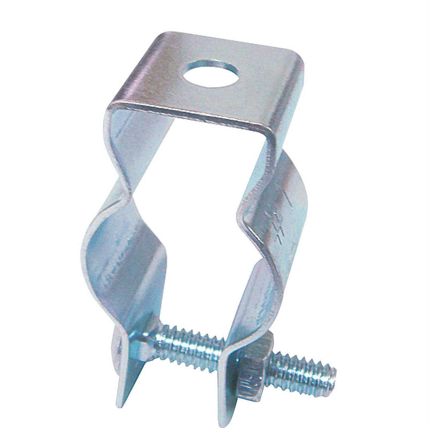 Used to secure & suspend EMT rigid IMC & PVC conduits from overhead supports. Carriage bolt & nut attached. Made of stamped steel. Zinc plated finish. UL & CSA listed.