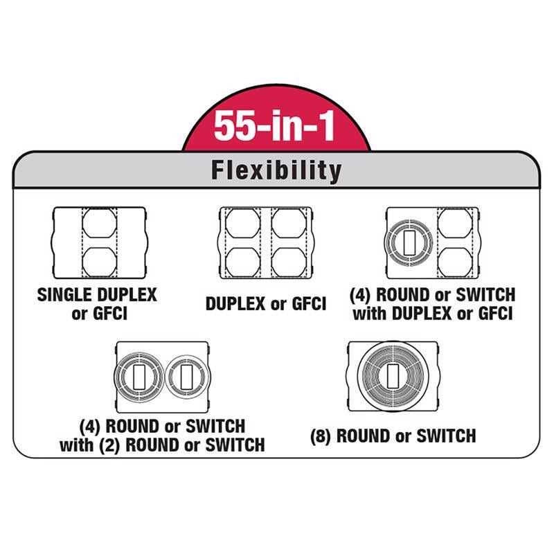 - 55 configurations: adaptable for GFCI, duplex, round and switch devices