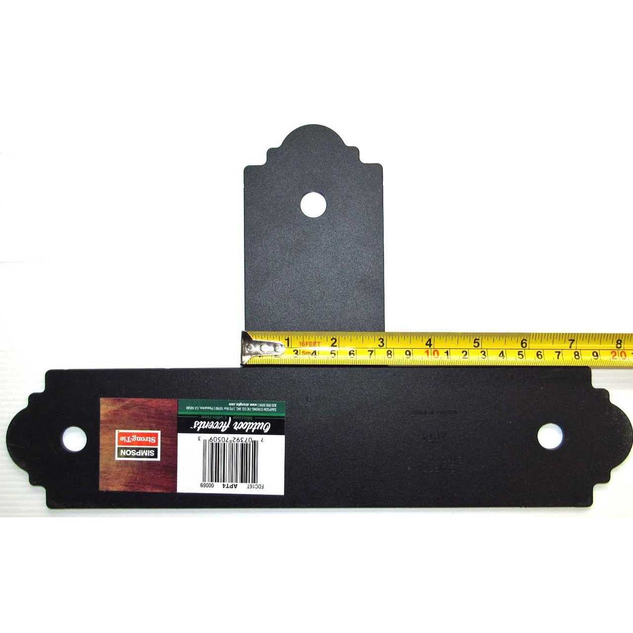 Outdoor Accents flat T straps from Simpson Strong-Tie bring decorative appeal and lateral strength to any outdoor living space. They provide reinforcement for a connection where one lumber piece intersects another at a 90° angle. This T strap is easily installed with Outdoor Accents structural screws and hex-head washers. The APT4 is designed for use with 4x lumber or larger.