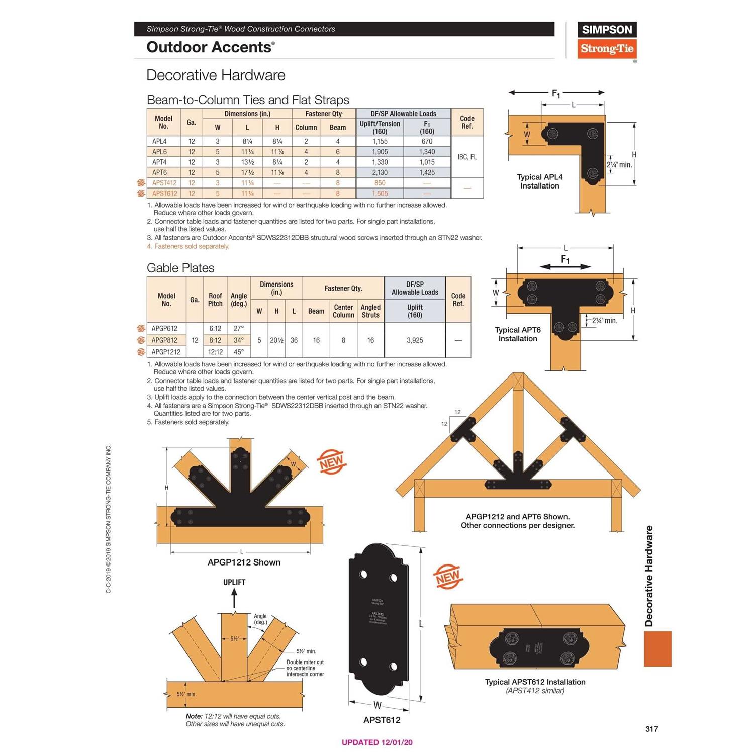 - Designed to accommodate multiple lumber sizes (minimum 4×4) and to be installed with outdoor accents structural wood screws and hex-head washers