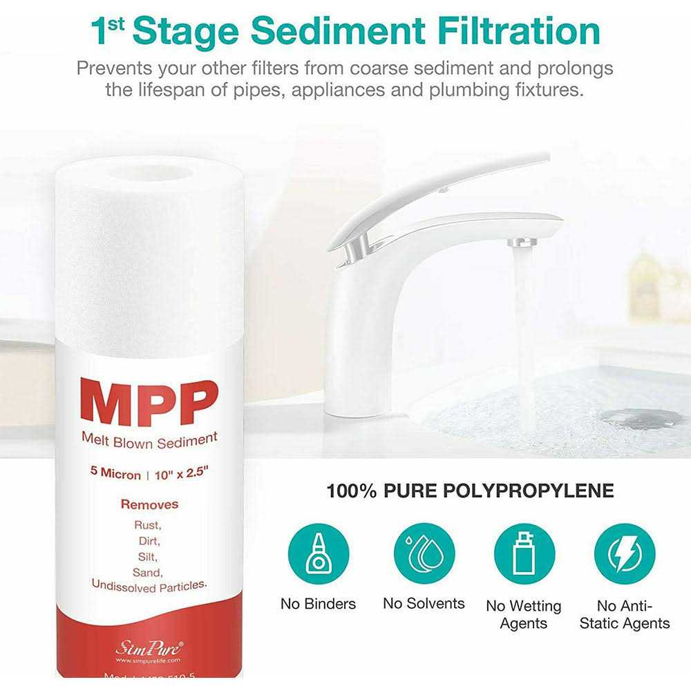 The SimPure T1 reverse osmosis system is pre-assembled with American plumbing fittings and comes with european-style kitchen faucet. The RO membrane is certified against NSF 58 for TDS reduction using reverse osmosis filtration with an accuracy of 0. 0001 micron. With 5 stages filter process removes up to 99.9% of contaminants such as heavy metals lead nickel cadmium arsenic zinc and chemicals like chlorine nitrates fluoride as well as naturally occurring elements such as calcium magnesium and man-made contaminants like PFAS and microplastics leaving your water safe and fresh. Fits install under the sink the tested full flow rate 3.1 GPH @ 60 PSI (75 Gallons Per Day). The water filter system is fully upgraded with quick push connect fittings does not rely on a water leak detector to protect your home like other brands. If you want a tankless UV RO under sink water purifier please click:SimPure T1-400 UV Reverse Osmosis System Note:If you use the water with too many impurities or well water please buy the following pre-filter to pretreat the water otherwise the large particles in the water are easy to block the filter element of the machine affecting the normal use of the machine. Please click: SimPure Whole House Water Pre-Filter System Purchase water storage tank please click: (???? SimPure 3.2 Gallon Water Storage Tank????).
