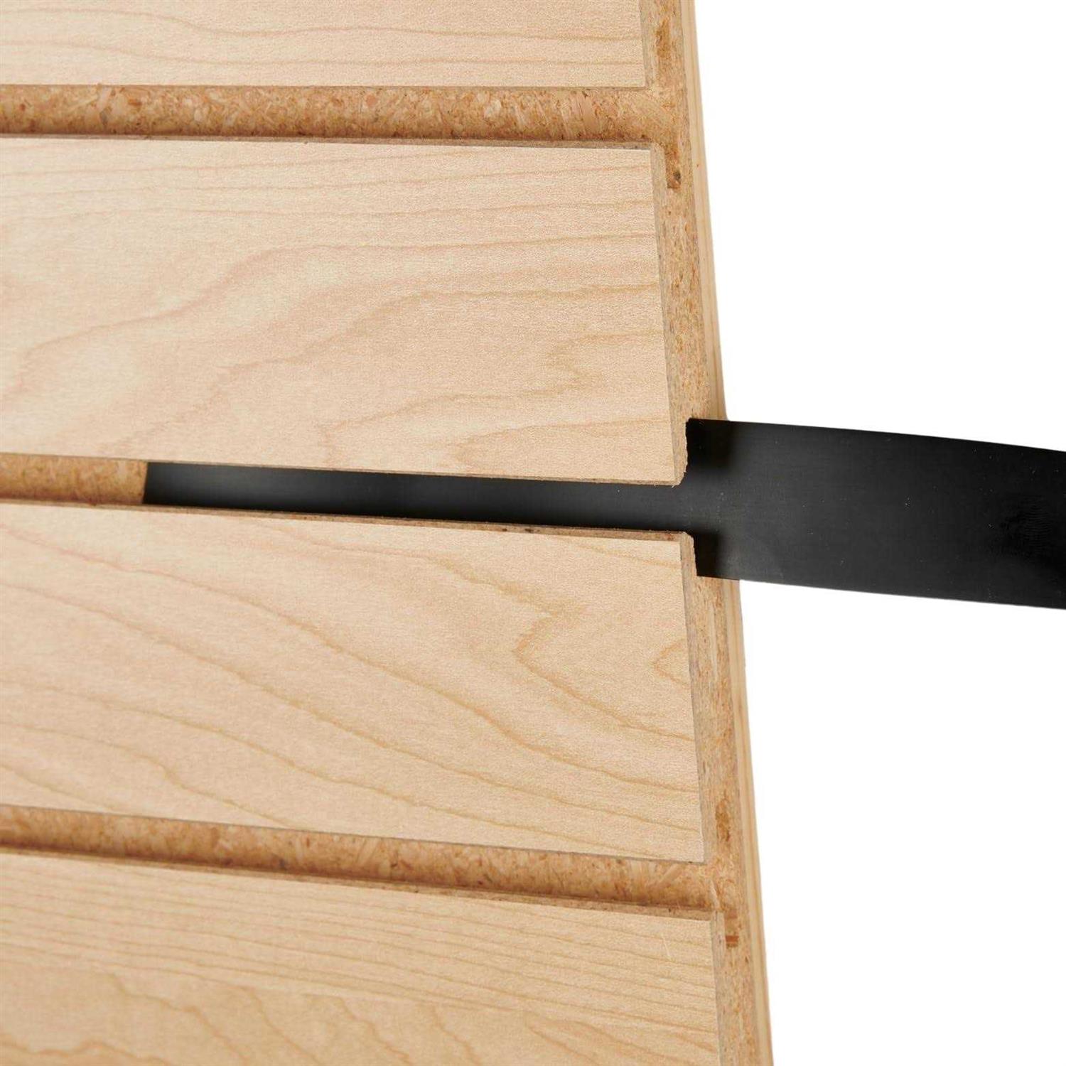 Cover up blemishes in your Slatwall with this Black Vinyl Slatwall Insert. This insert is designed to add a finishing touch to your black slatwall display. These Black Vinyl Inserts simply slide into grooves of slatwall to hide exposed particle board and any mounting screws, which will make your Slatwall look neat and professional. Just one roll of insert strips is enough to complete one 4′ x 8′ Slatwall panel.