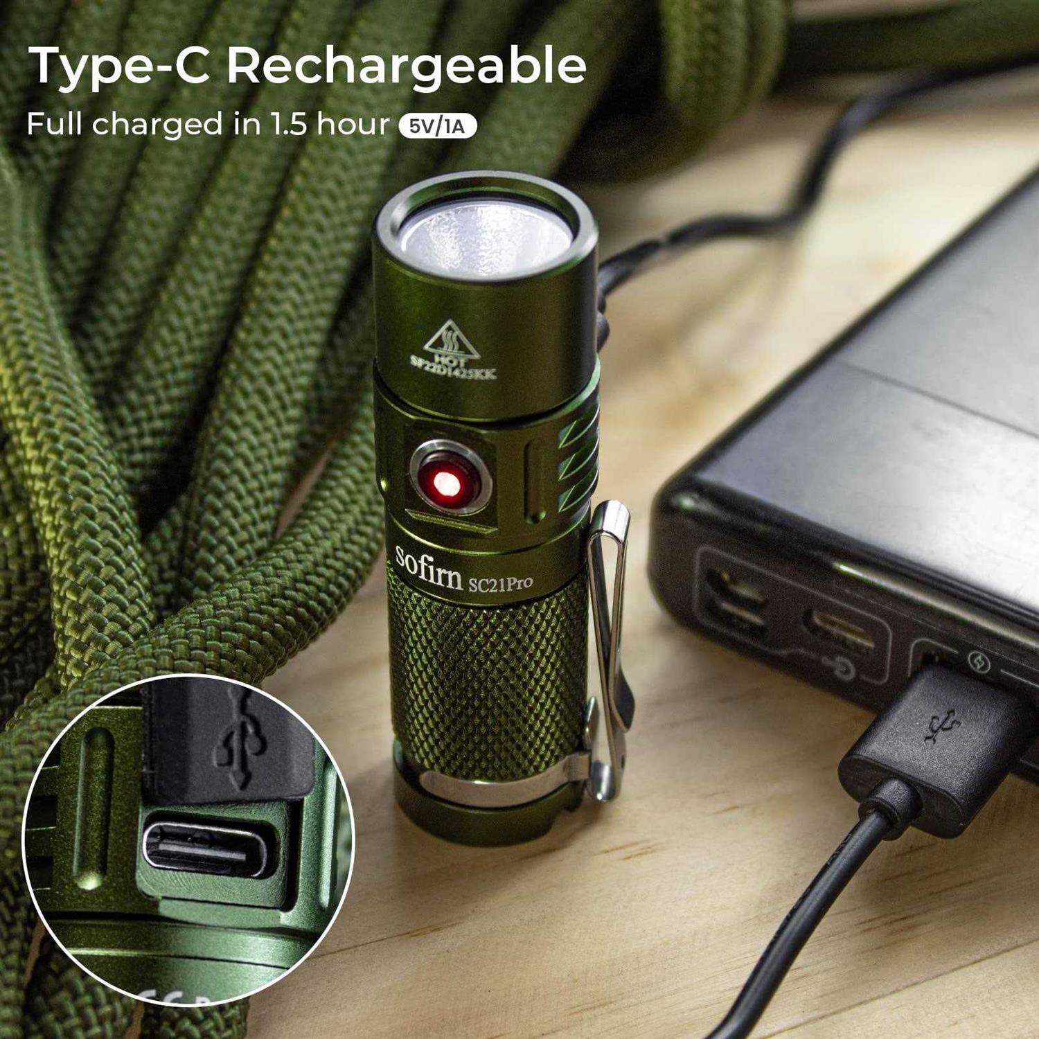 Sofirn SC21 Mini Small Flashlight 1000 Lumen USB Rechargeable Keychain Light with Super Bright LH351D LED