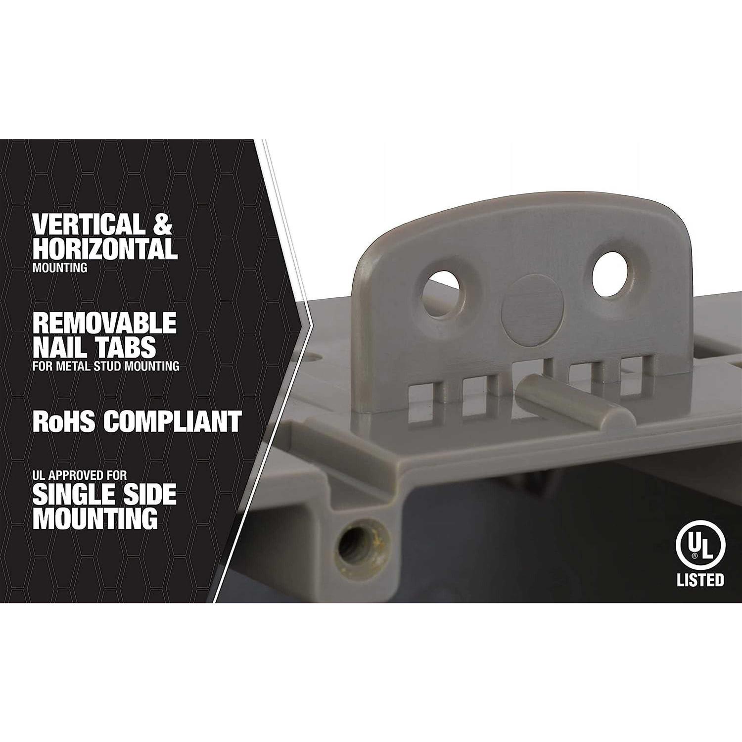 An even more user friendly device box. The new 1 thru 6 gang Multi-Mount device boxes are a hybrid of the Original Smart Boxes. These boxes offer additional built in features such as removable nail tabs used for metal stud mounting, removable interior mounting blocks to allow for more cubic inch in the box, built in mounting blocks on the top end of the box for vertical mounting, 1/2 in. knock outs for blue tube or PVC conduit connections, and finally Low-Voltage wall dividers to allow for mixed-Voltages in the same box. The result of these added features creates an even more user friendly device box to meet the ever growing demands on electricians in the field.